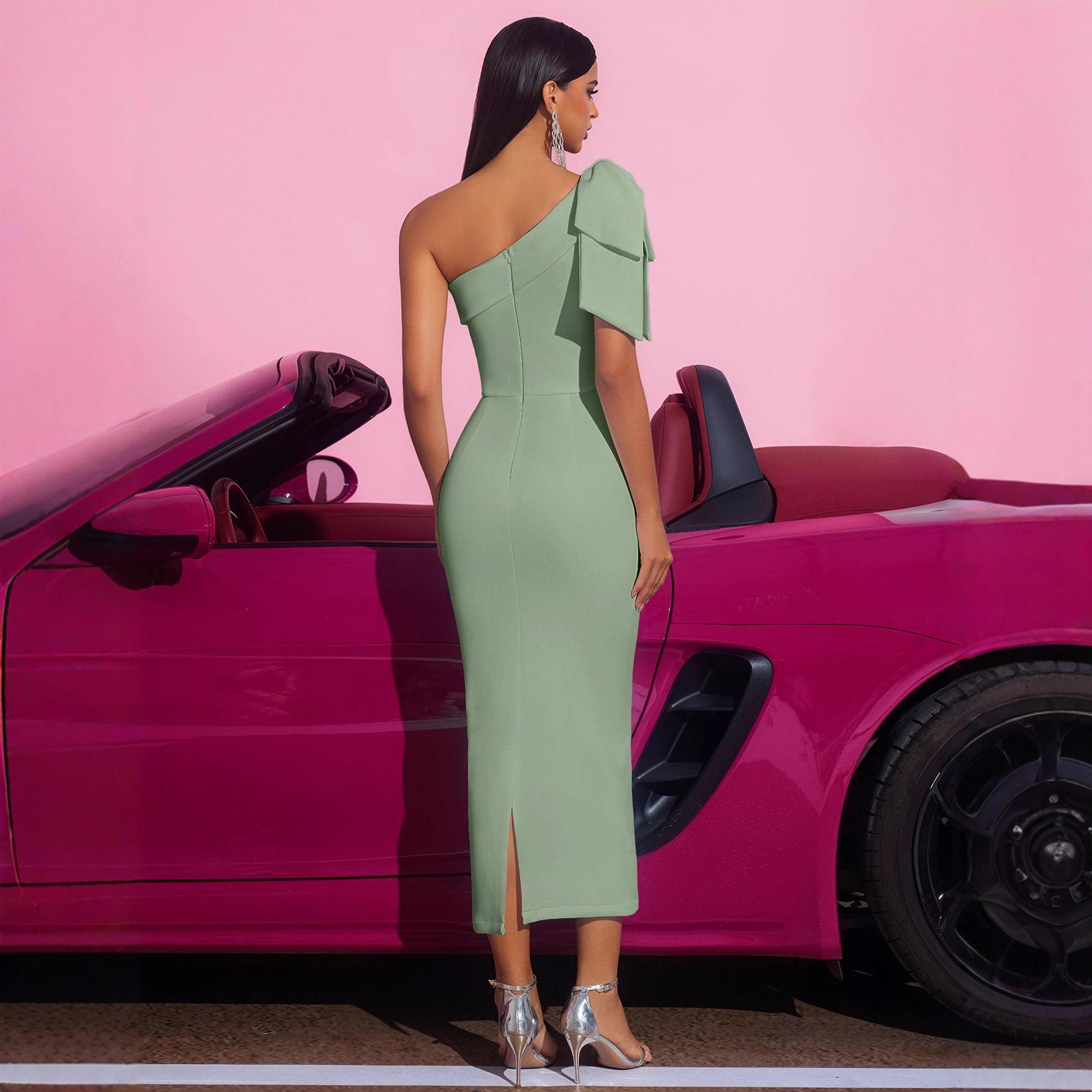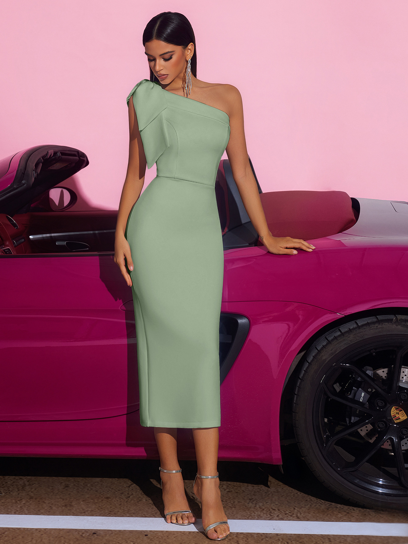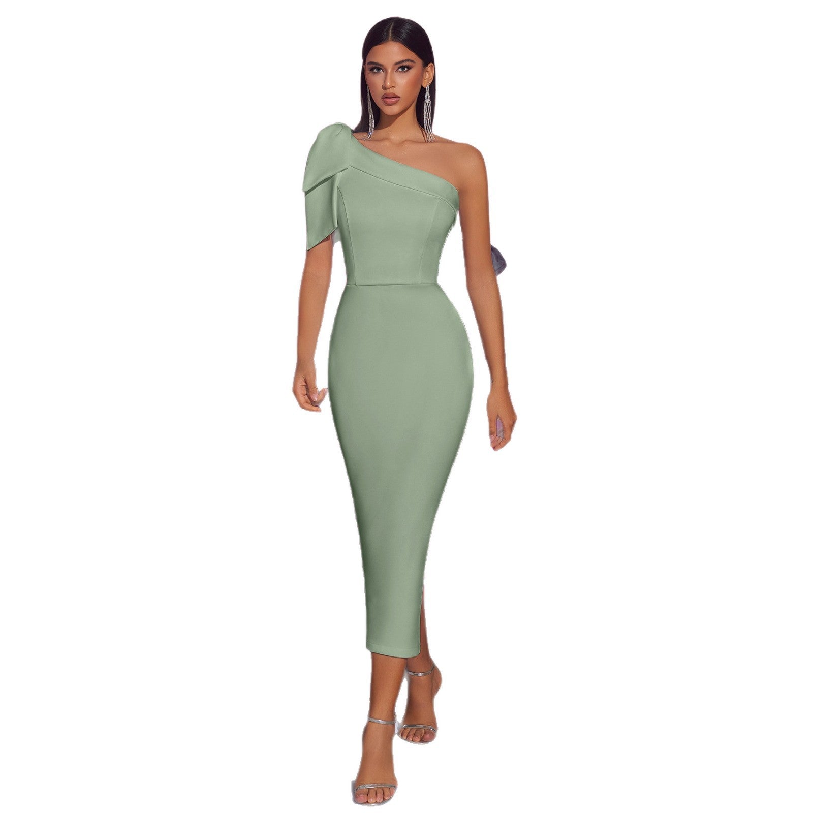 One Shoulder Bodycon Prom Dress Satin Bridesmaid Dress for Women Mermaid Formal Evening Prom Gowns