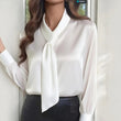 Autumn Solid-Colour Fashion-Forward Ribbon-Tie Long-Sleeved Blouse for Women