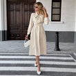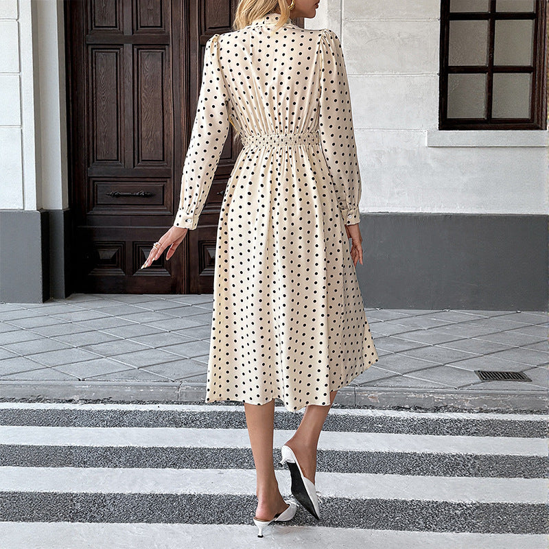 Classic French Elegant Polka Dot Dress for Women | Round Neck Long Sleeve Midi Dress