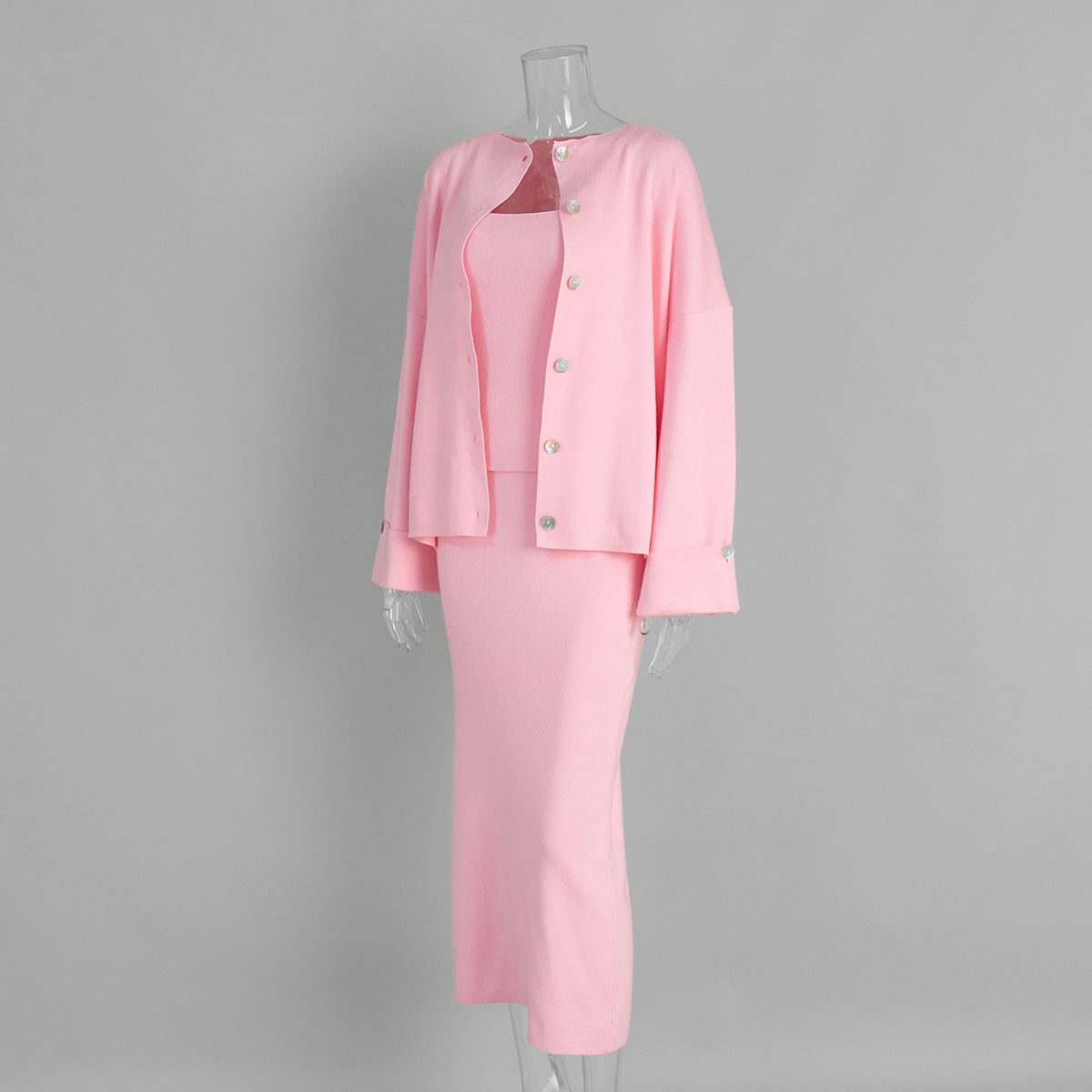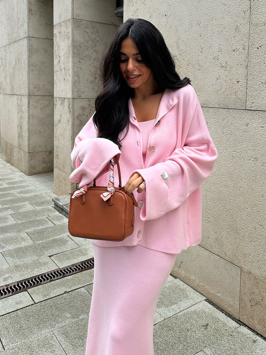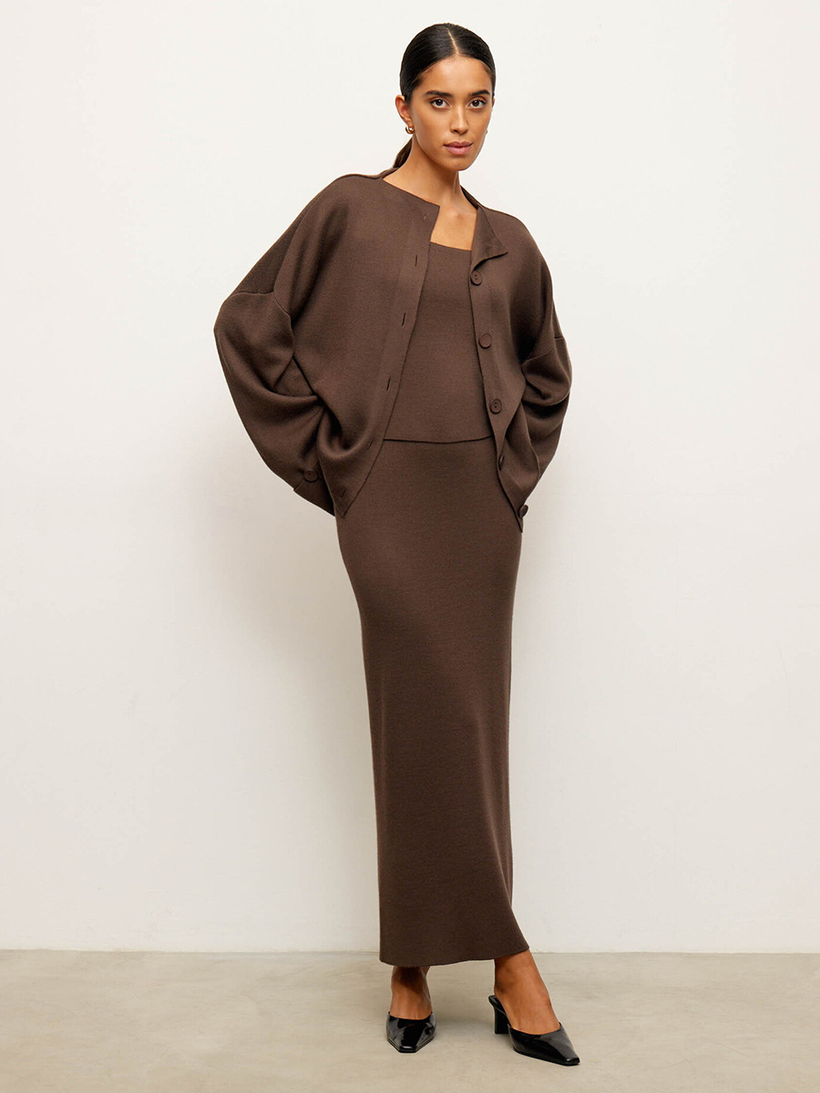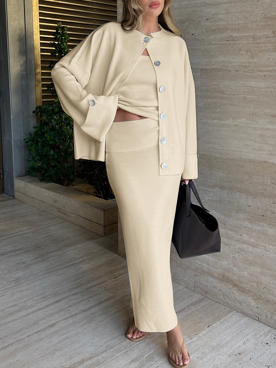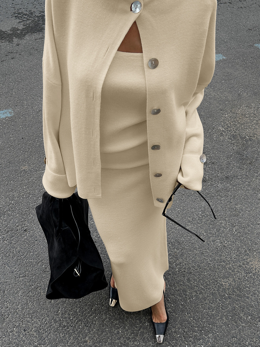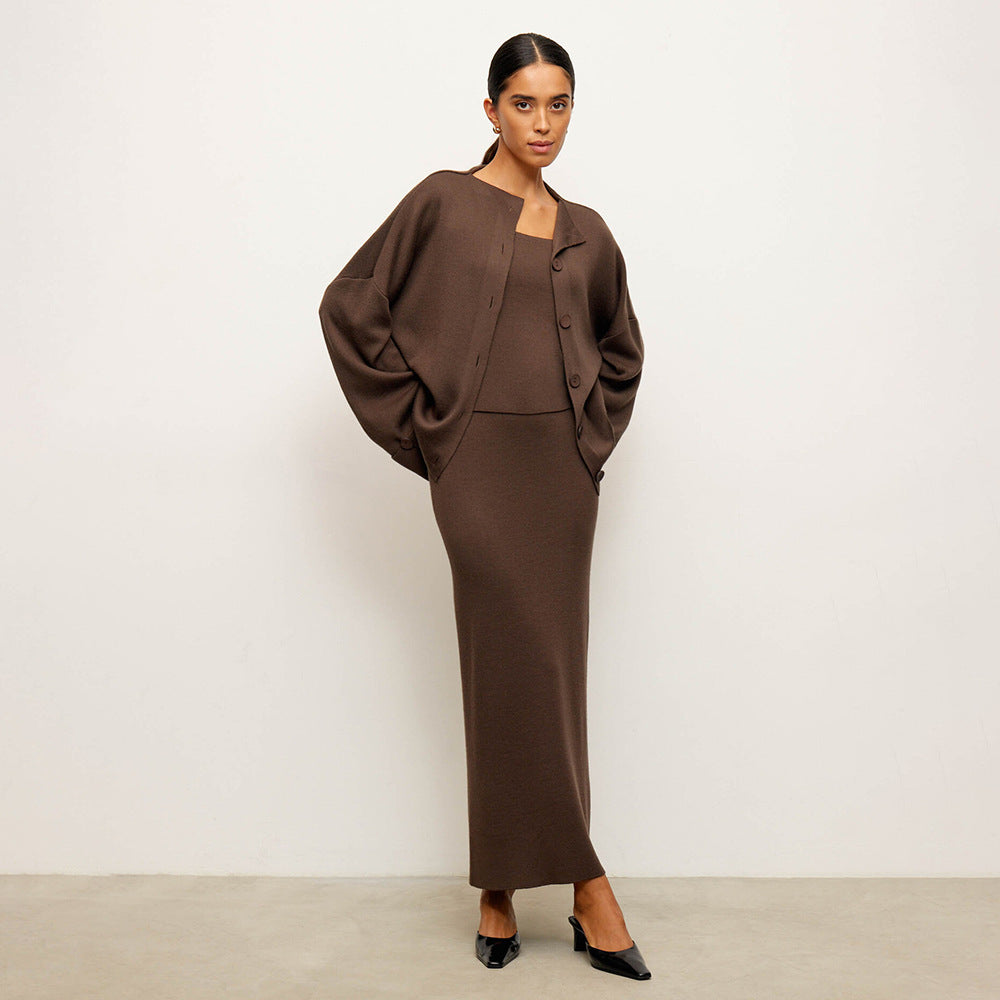 Knit Long-Sleeved Cardigan + Strapless Vest + Skirt Set European and American Style Women's Autumn/Winter Knitwear Ensemble