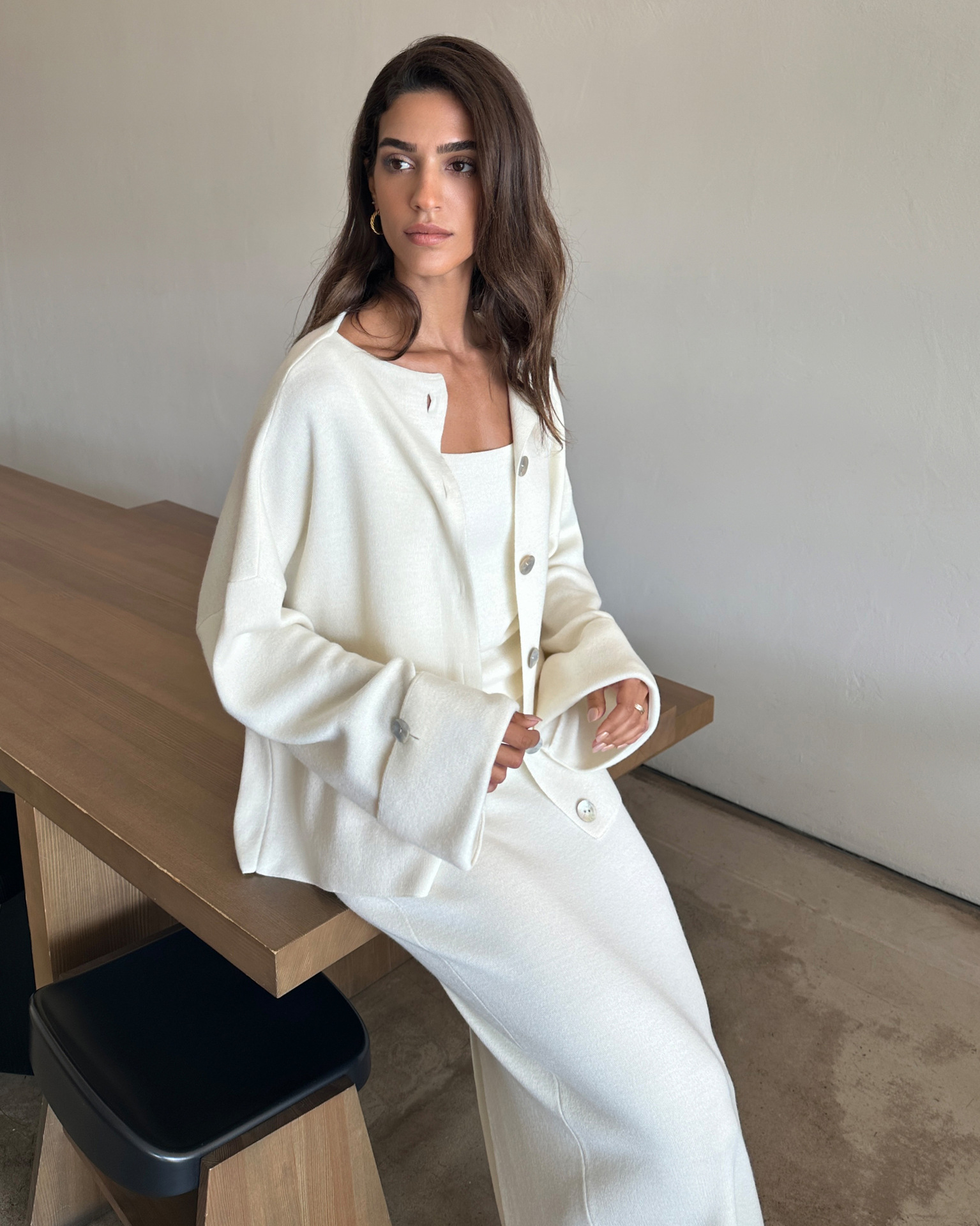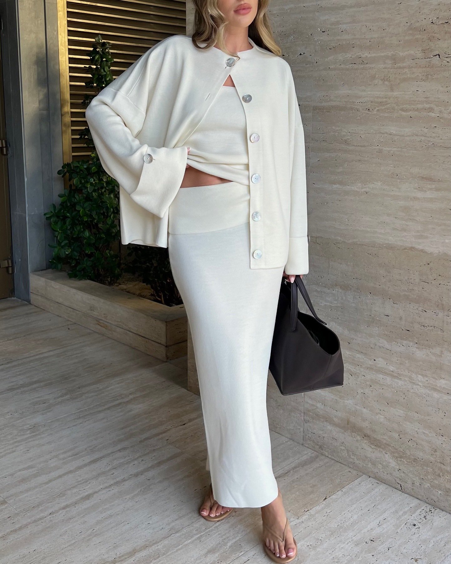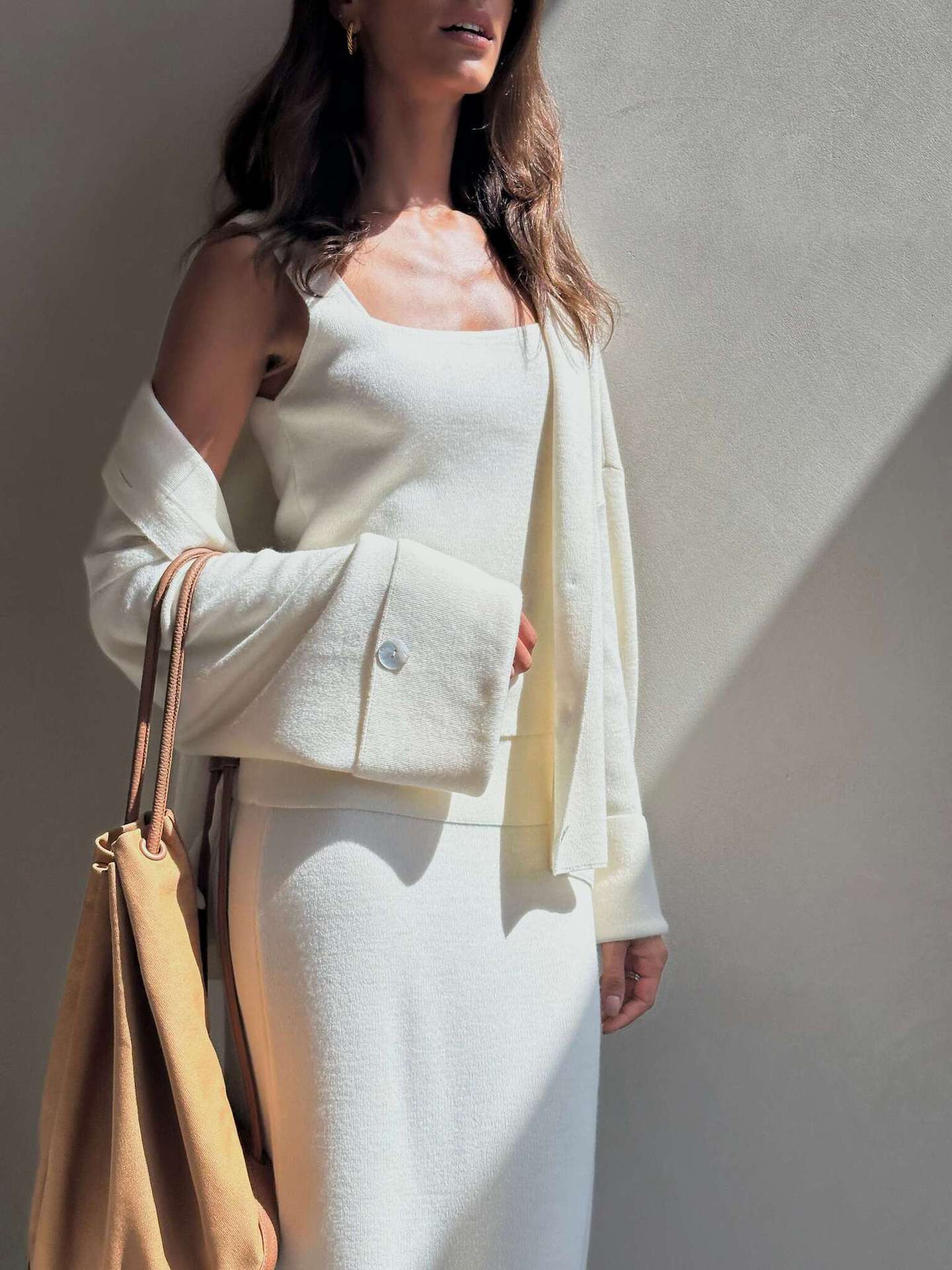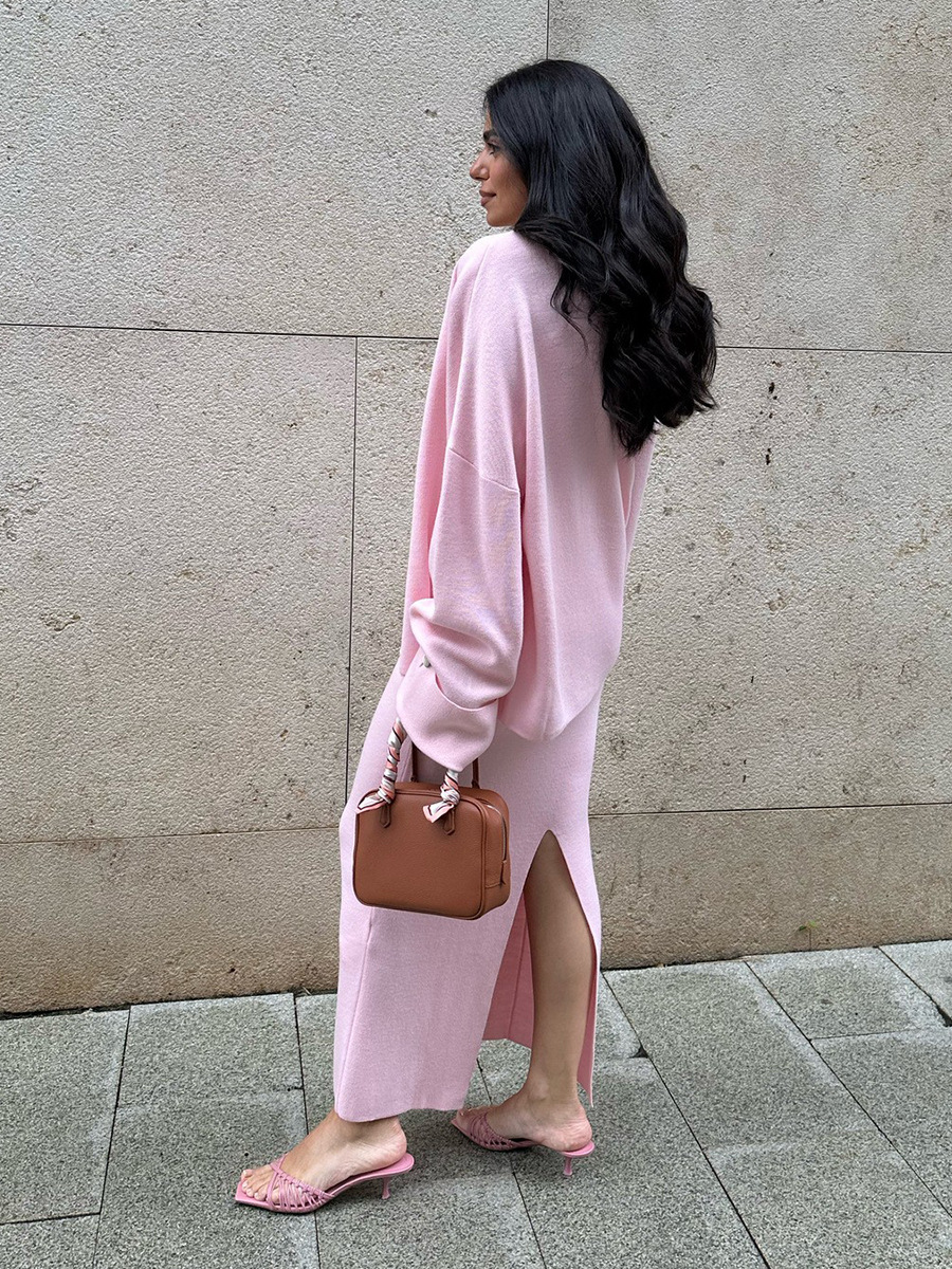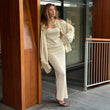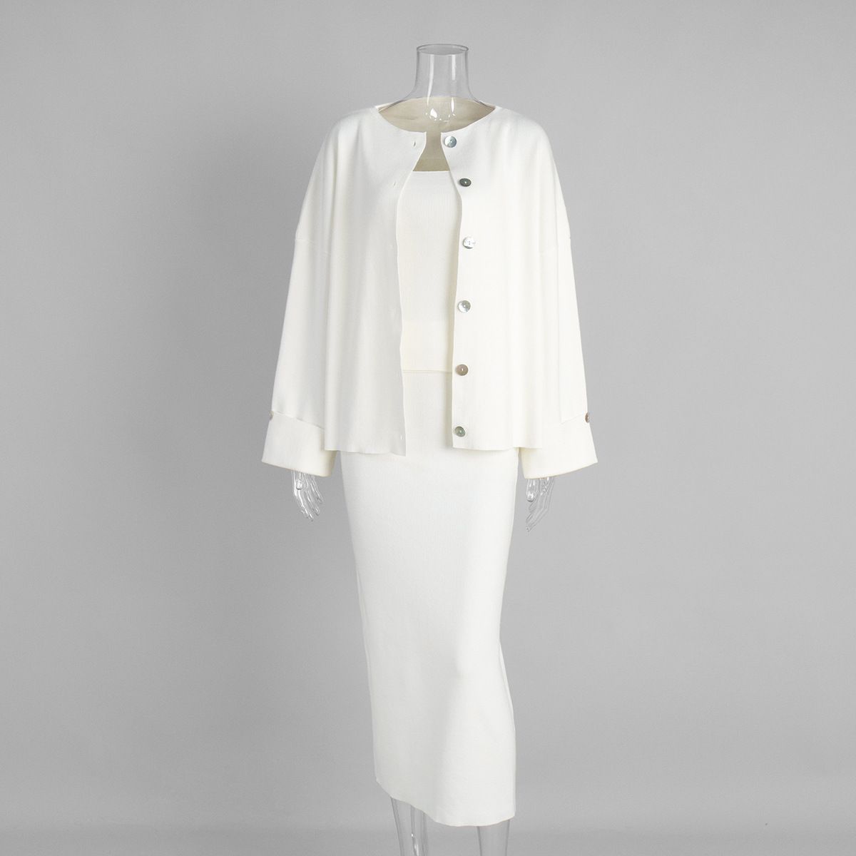 Knit Long-Sleeved Cardigan + Strapless Vest + Skirt Set European and American Style Women's Autumn/Winter Knitwear Ensemble
