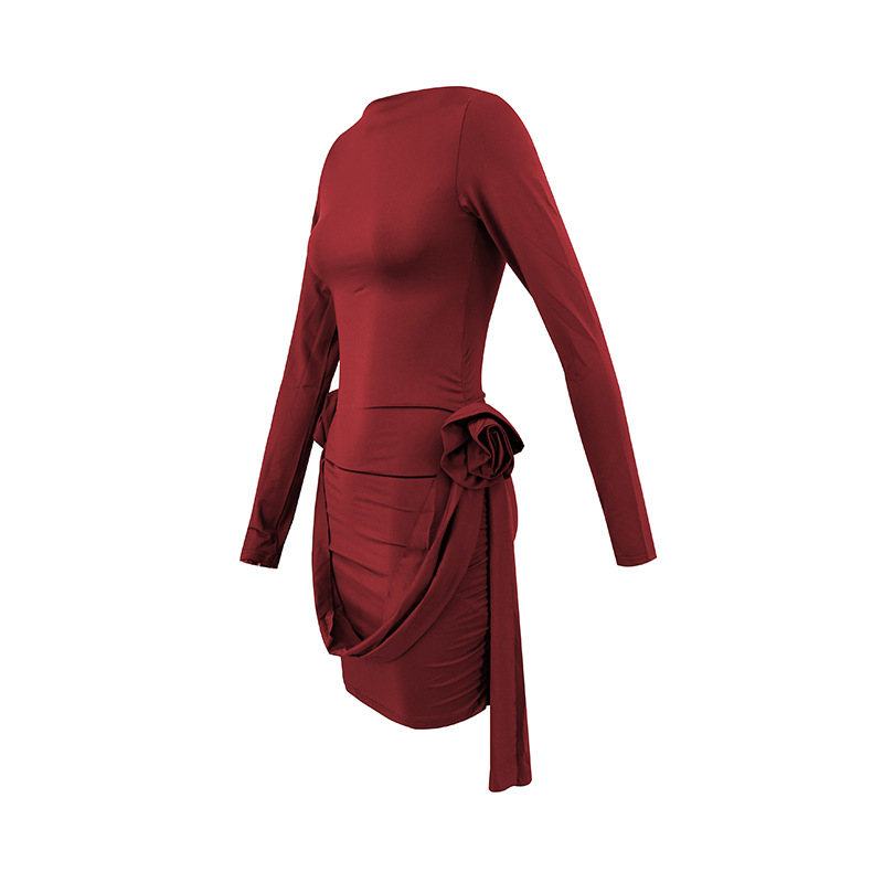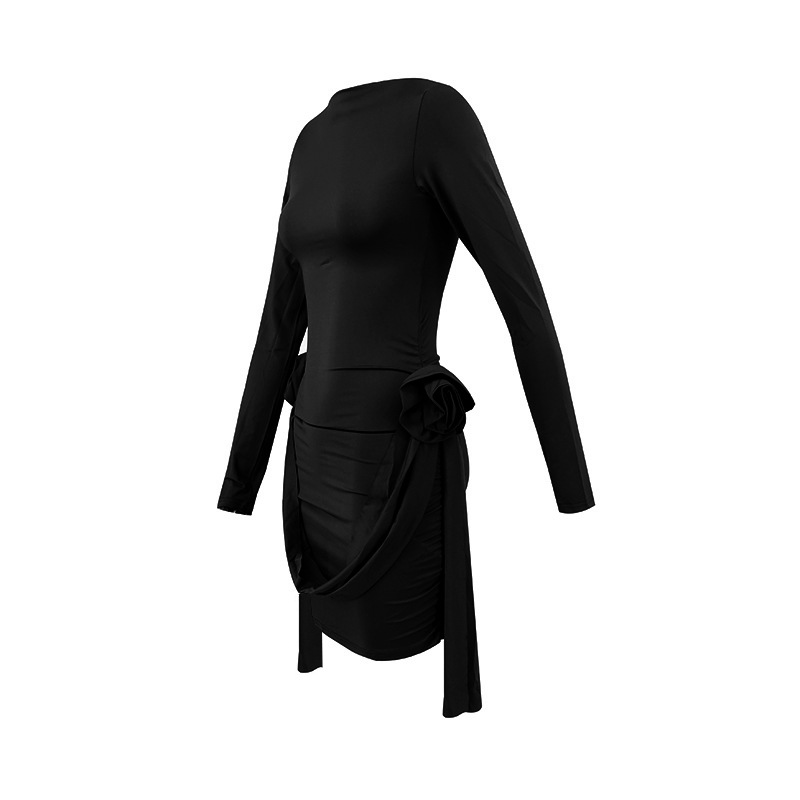 Long Sleeve Dress for Women, 3D Flower Mini Dress Clothing Aesthetic, Clean Girl Mini Dress