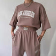 New Women's Casual Commuter Print Short-Sleeved Sweatshirt and Trousers Two-Piece Set