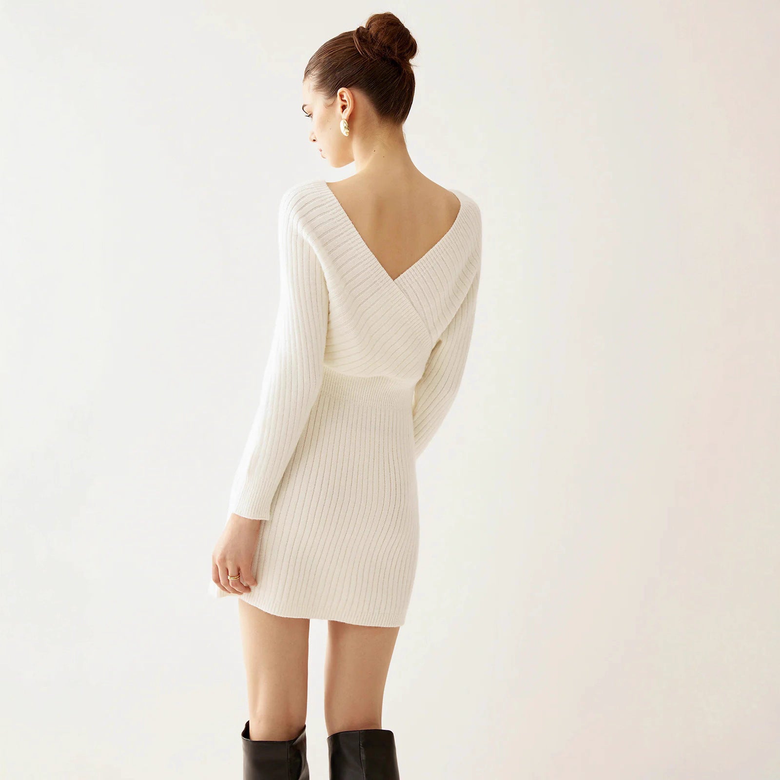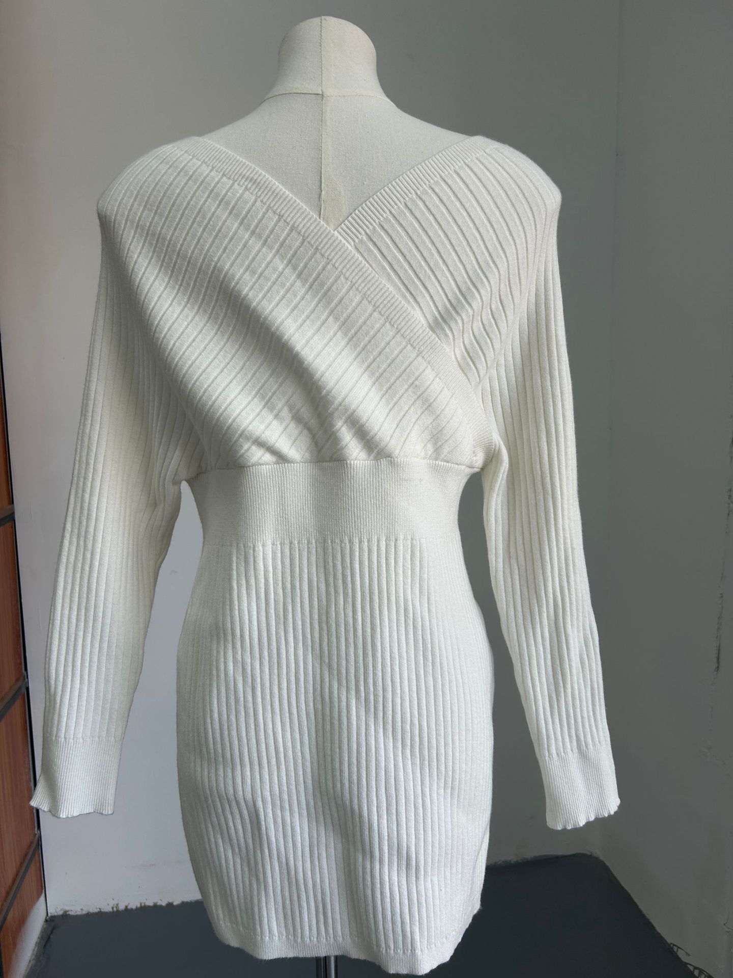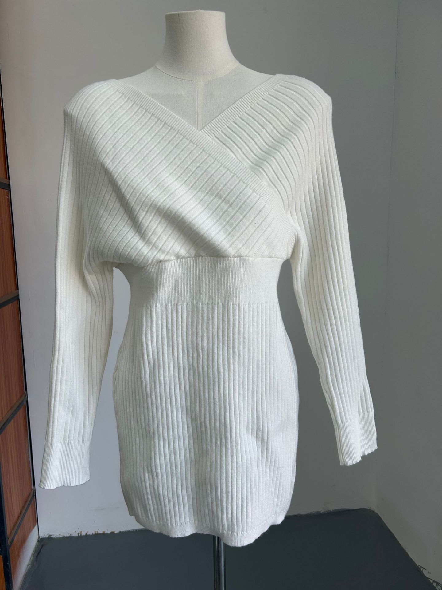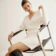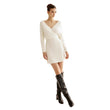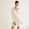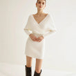 Off Shoulder Sweater Dress for Women Sexy V-Neck Long Sleeve Short Dress Knit High Stretch Mini Tunic Dress