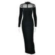 Seductive Mesh-Panel Velvet Dress with Long Sleeves Fitted Vintage-Style Cocktail Dress Mid-Length Pencil Skirt