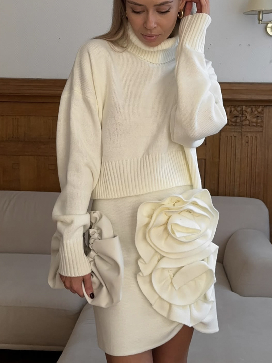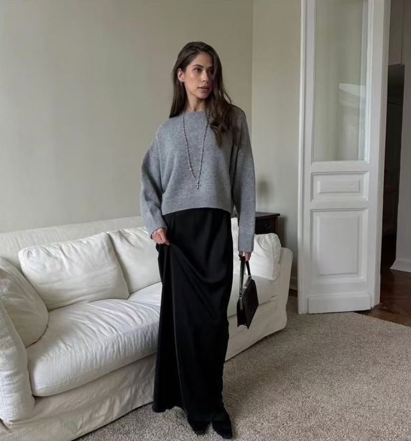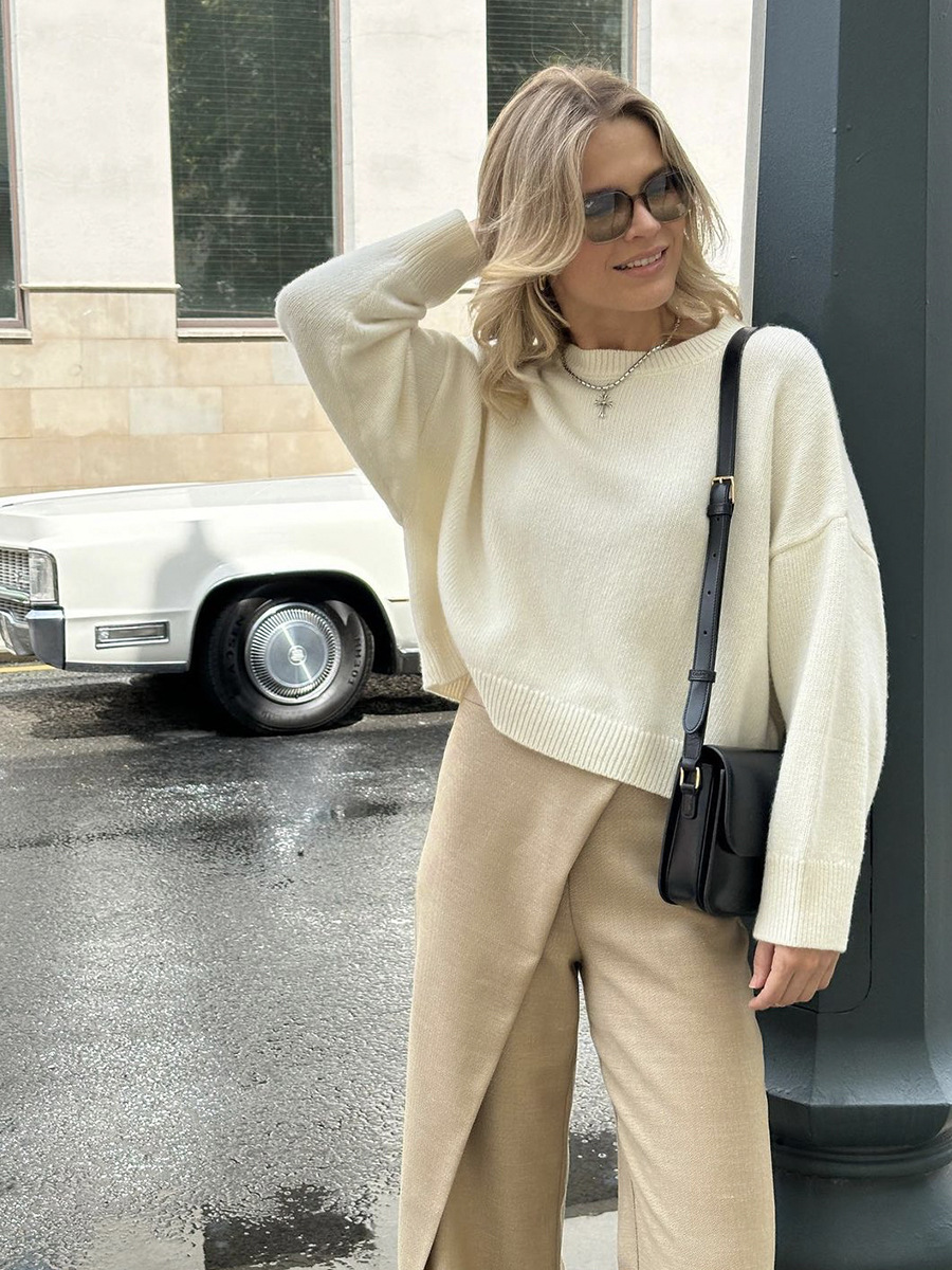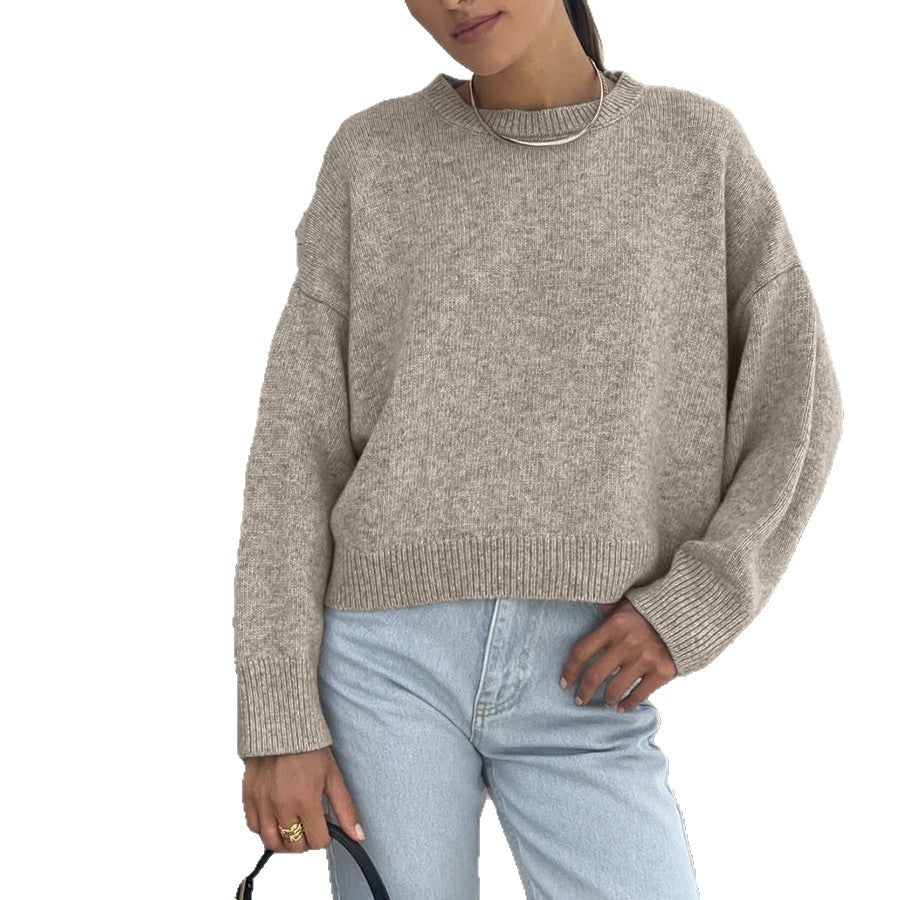 Thickened Short-Sleeved Crew Neck Solid Colour Knit Jumper Versatile European-American Style Basic Women's Wear