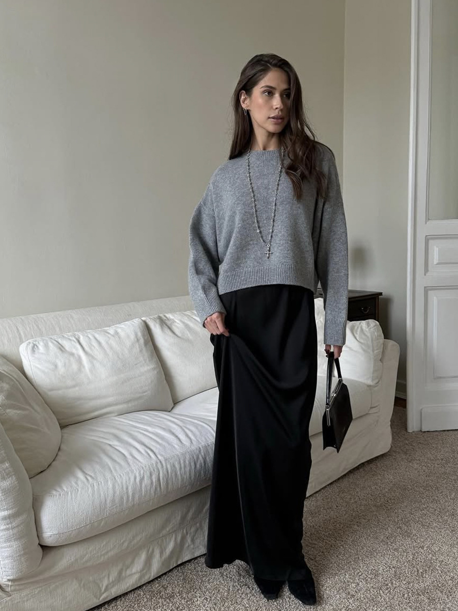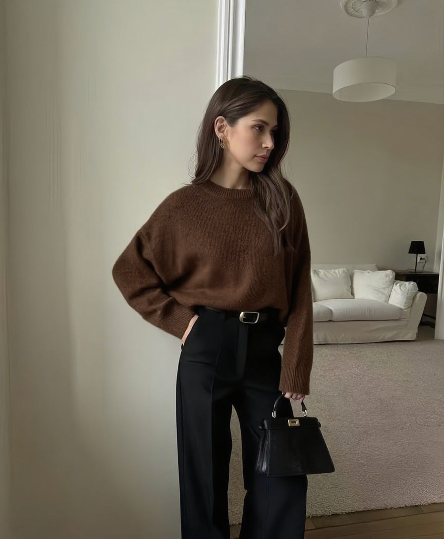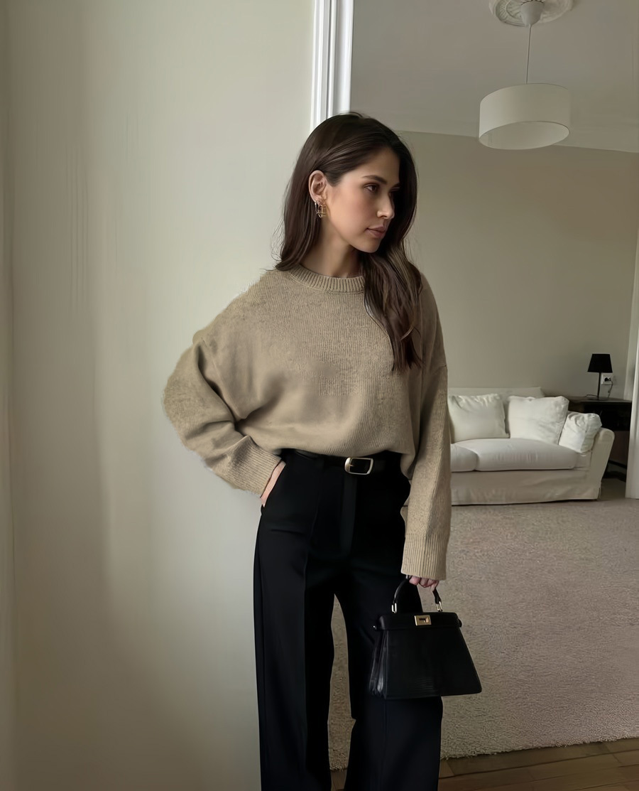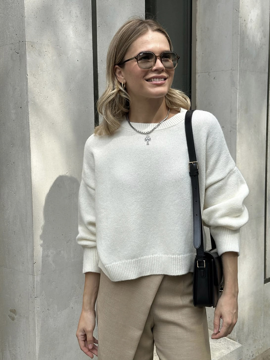 Thickened Short-Sleeved Crew Neck Solid Colour Knit Jumper Versatile European-American Style Basic Women's Wear