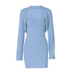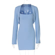 Two-piece set: Sensual women's halter-neck ruffled-sleeve pleated mini skirt with sheer mesh side slit Charming party skirt