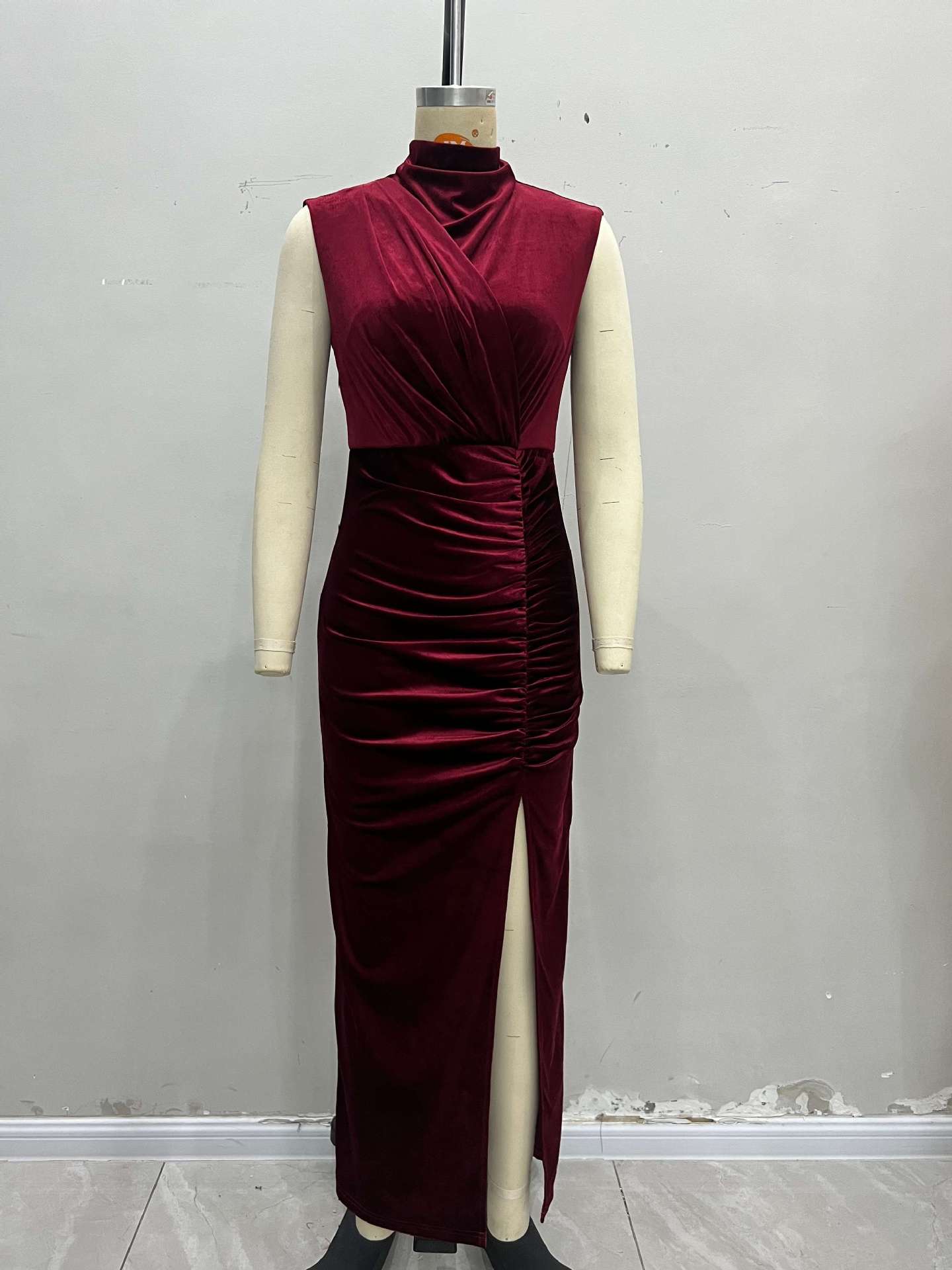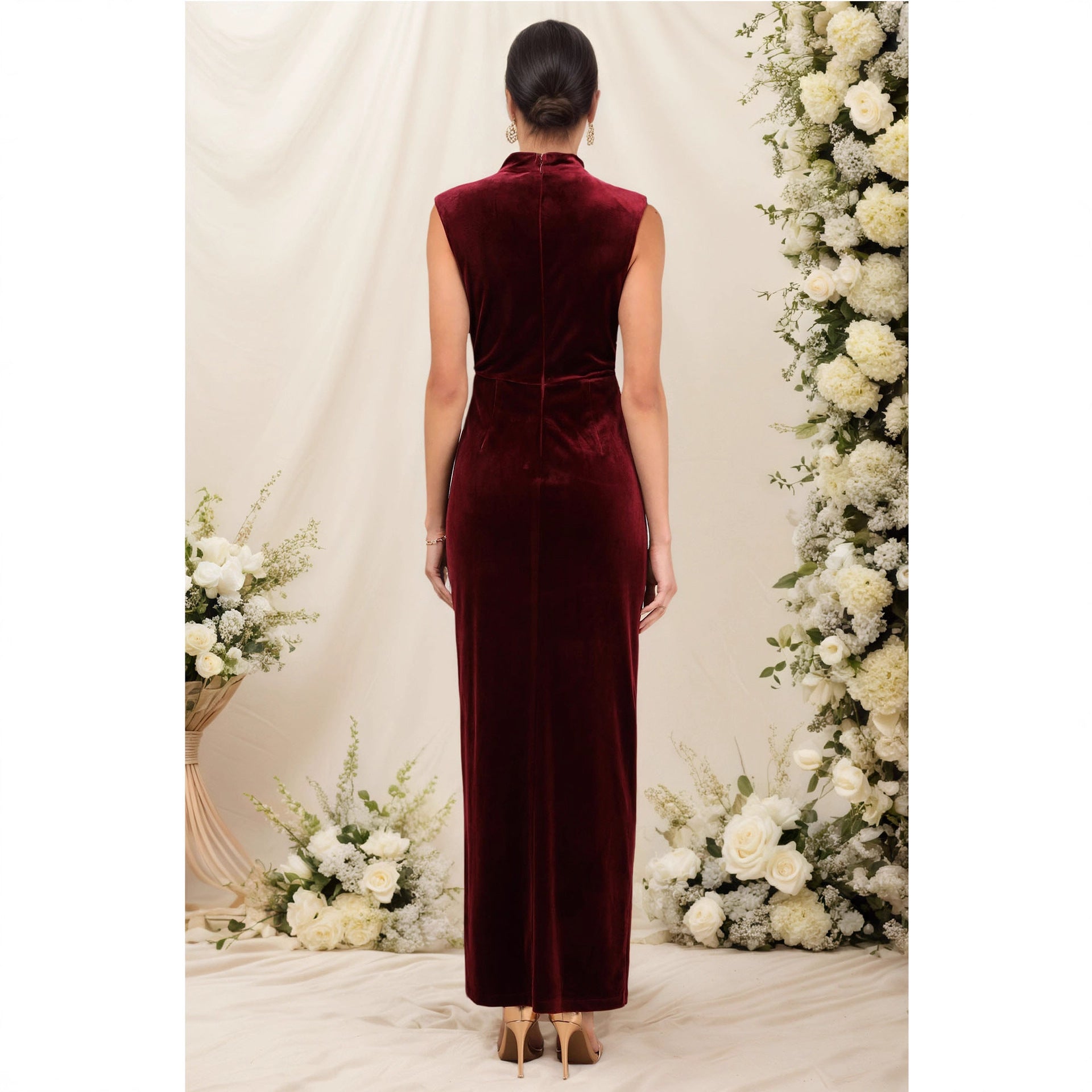 Velvet Wedding Guest Dresses for Women, Fall Formal Cocktail Maxi Dress, Cowl Neck Mermaid Evening Gown