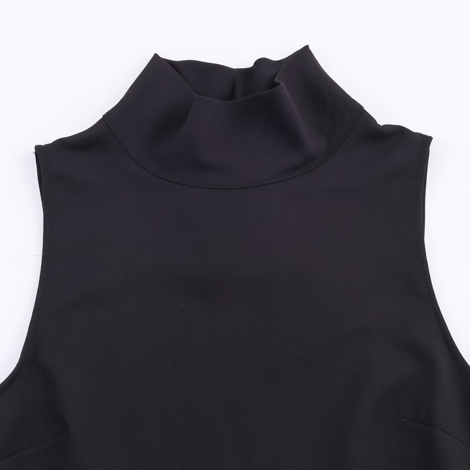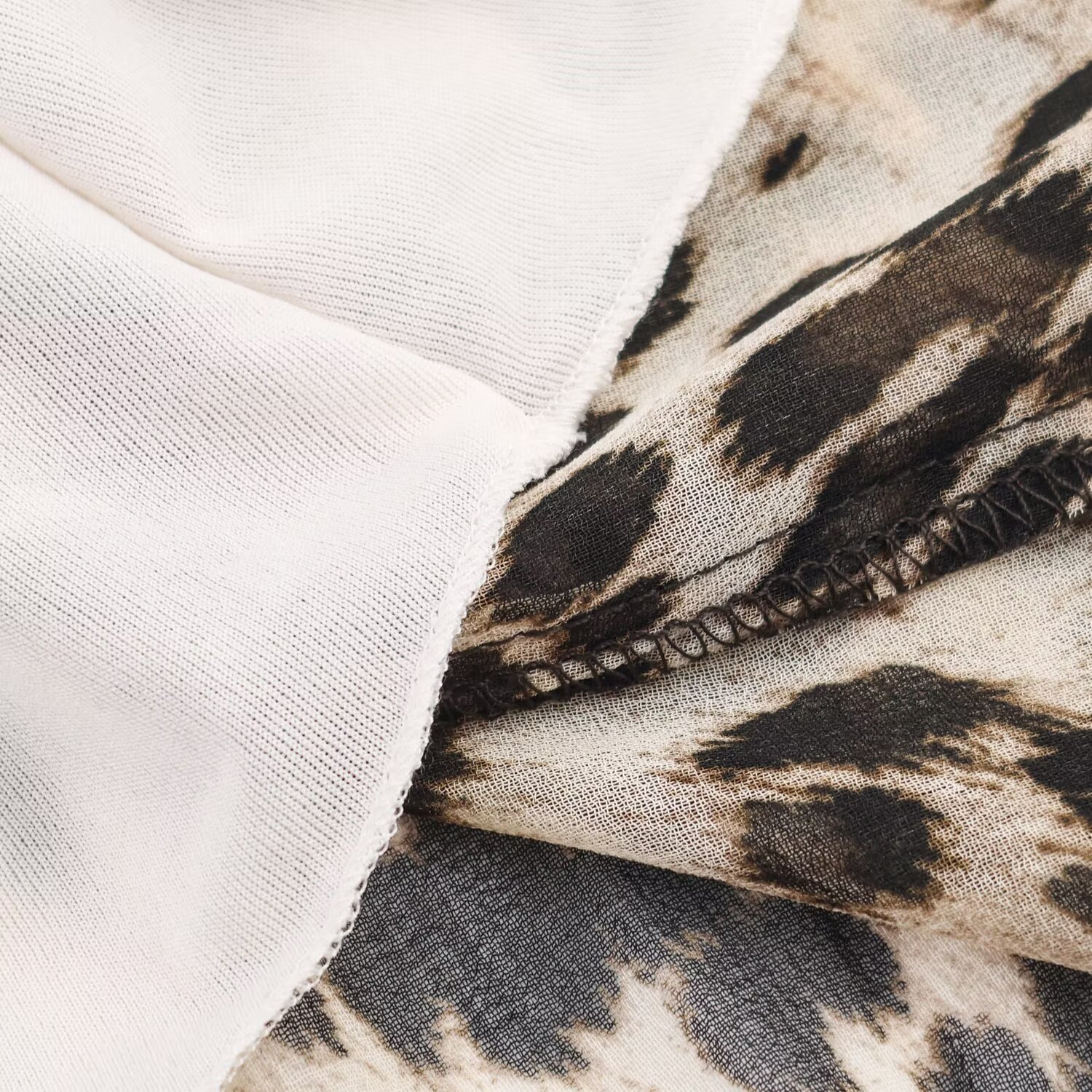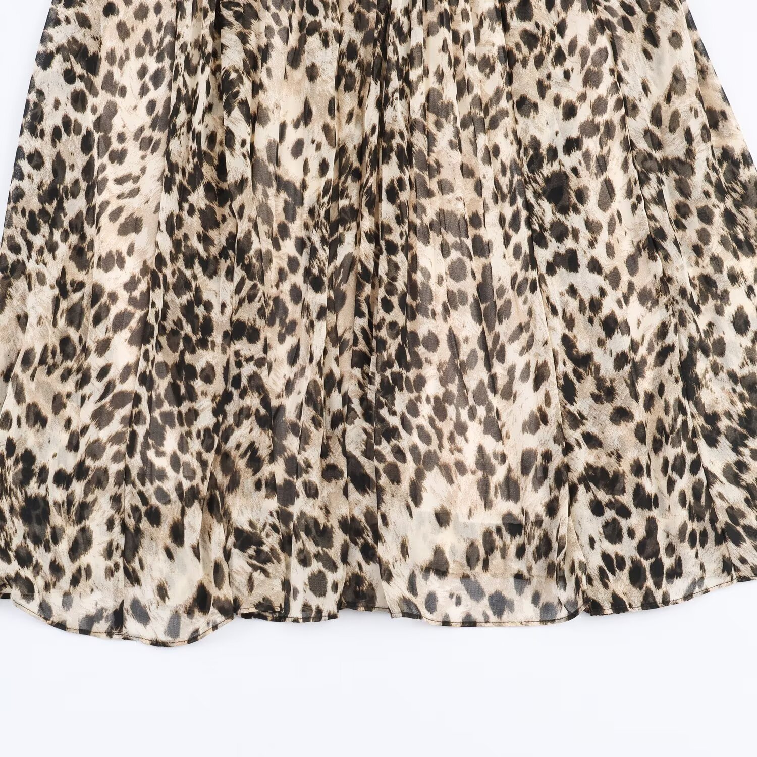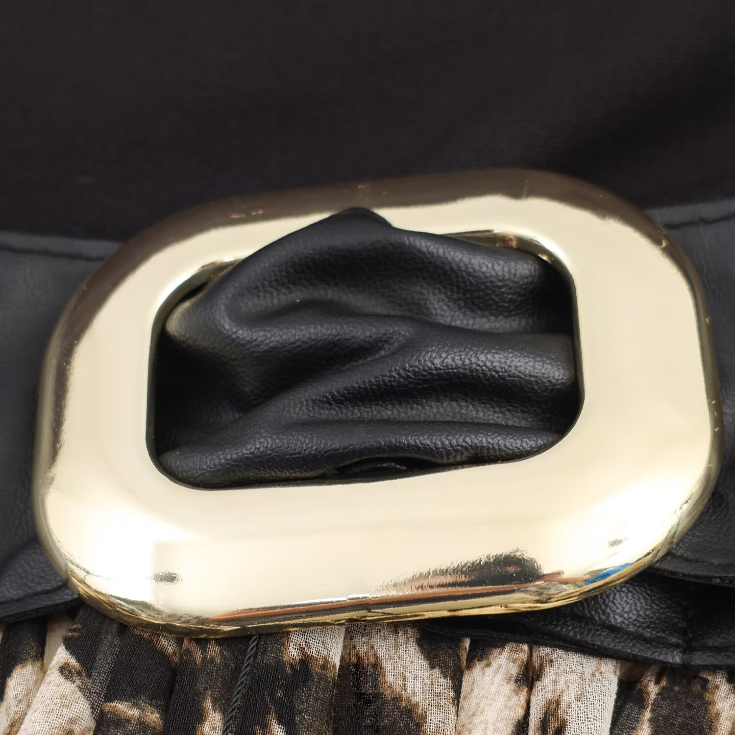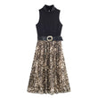 Women A Line Midi Dress High Neck Sleeveless Animal Print Patchwork Design with Wide Faux Leather Belt Elegant