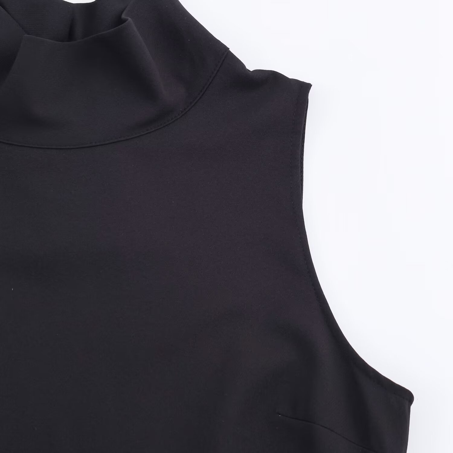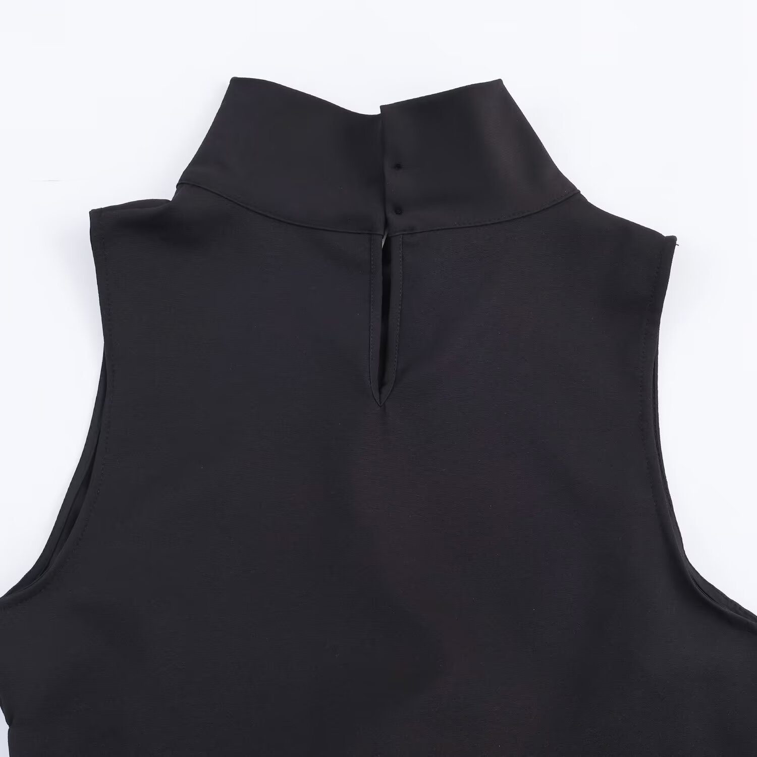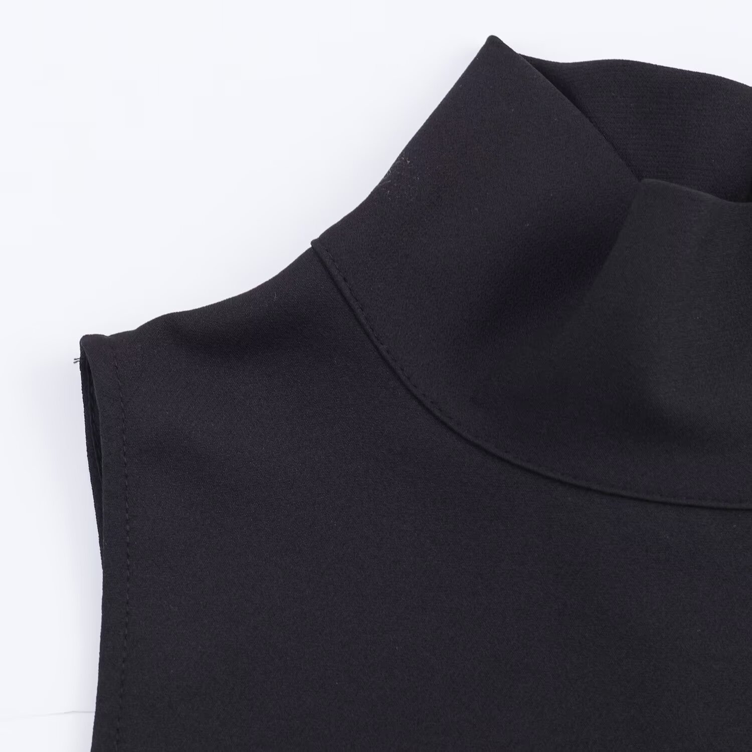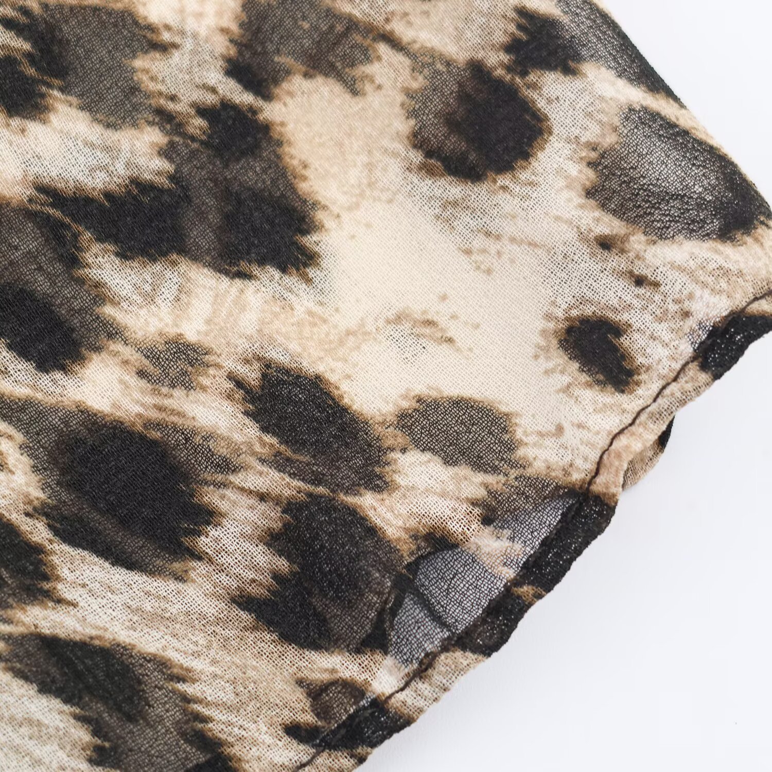 Women A Line Midi Dress High Neck Sleeveless Animal Print Patchwork Design with Wide Faux Leather Belt Elegant
