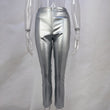 Women Front Zipper Up Faux Leather Leggings High Waist PU Skiny Pants Metallic Shiny Stretchy Silver Tights