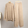 Women Knitted Suit Soft Turtleneck Long Sleeve Sweater Wide Leg 2 Pieces