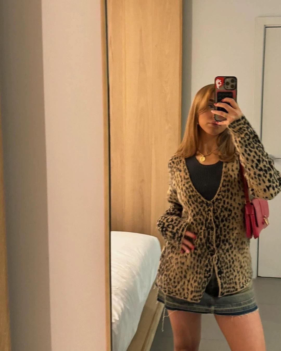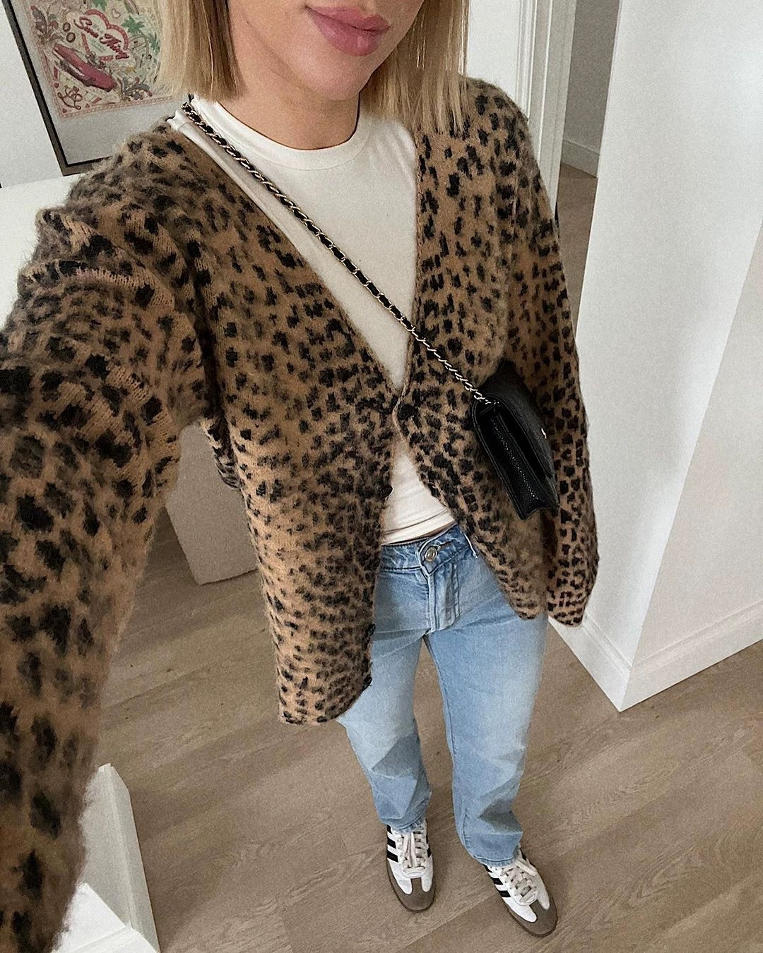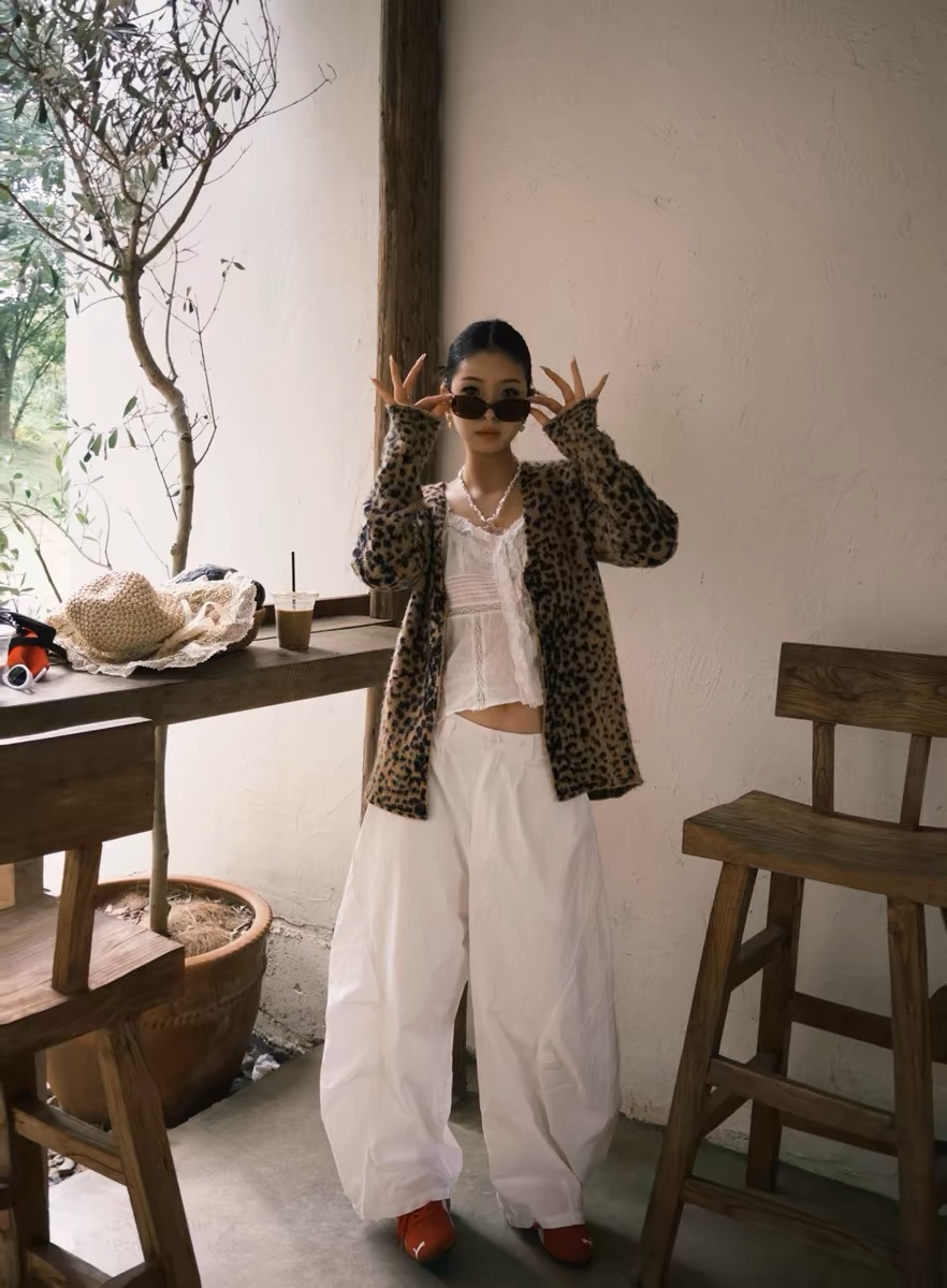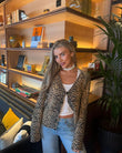 Women Leopard Print Long Sleeve V Neck Button Down Sweater Cardigan Casual Knit Lightweight Fall Winter Outwear Tops