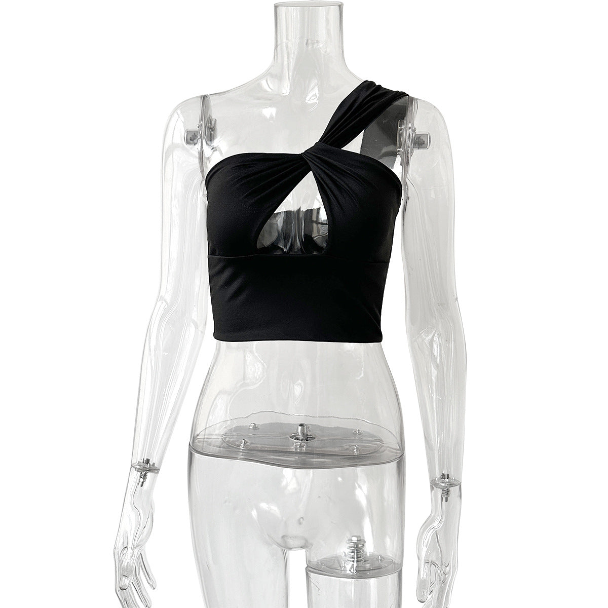 Women Solid Color One-Shoulder Cut-Out Sexy Crop Top Sleeveless Bodycon Summer Top