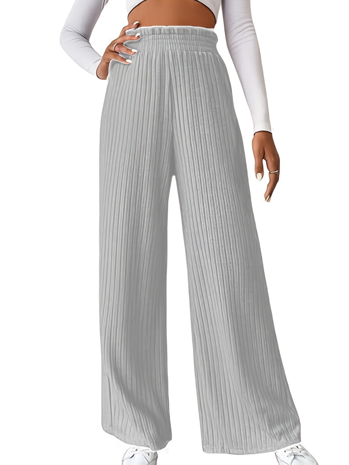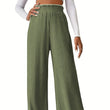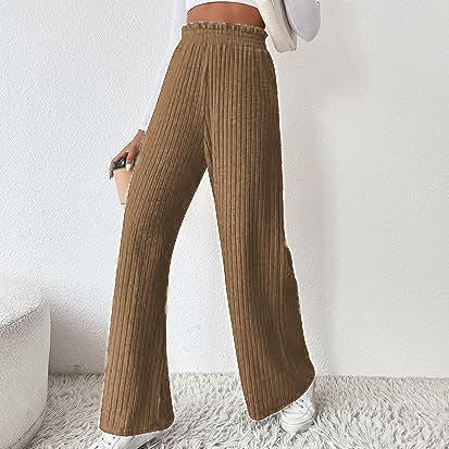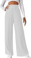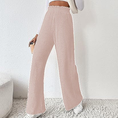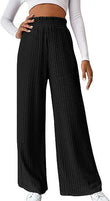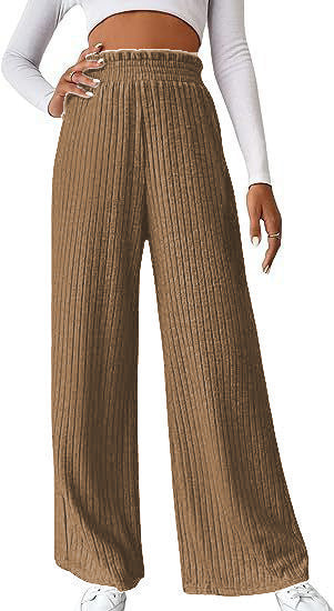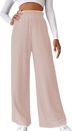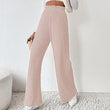 Women Winter Pleated Medium Strecth Casual Loose Elastic Waist Knitted Trousers Wide Leg Pants