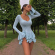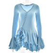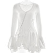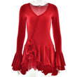 Women's Bell-Sleeve, Fitted Waist, Sexy, Single-Button Dress for Valentine's Day Dates and Evening Parties.