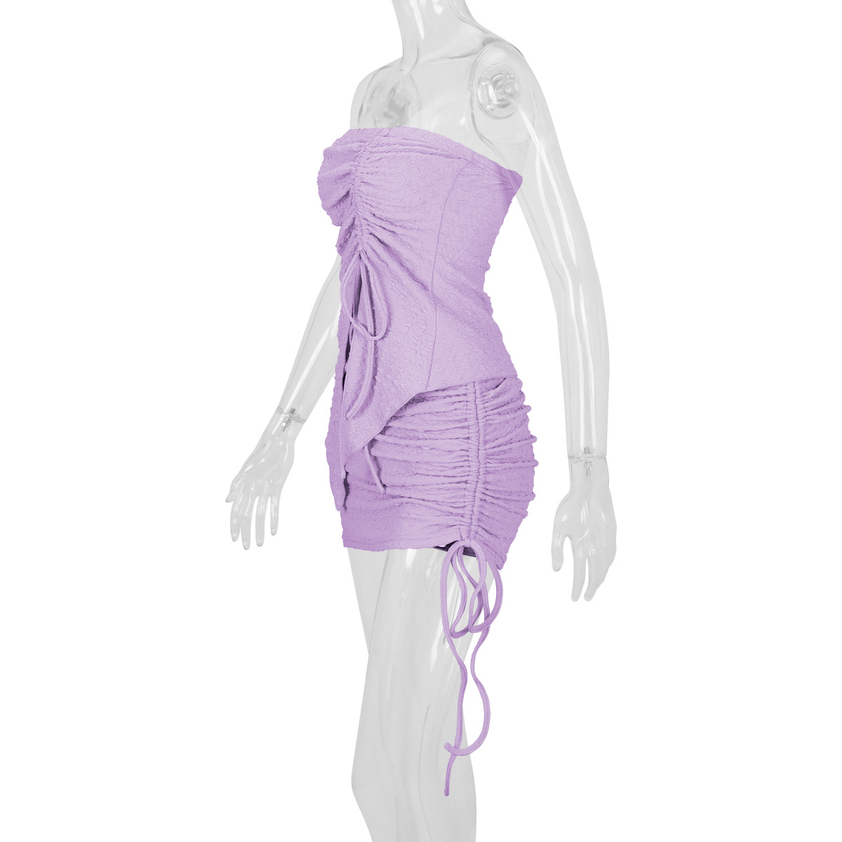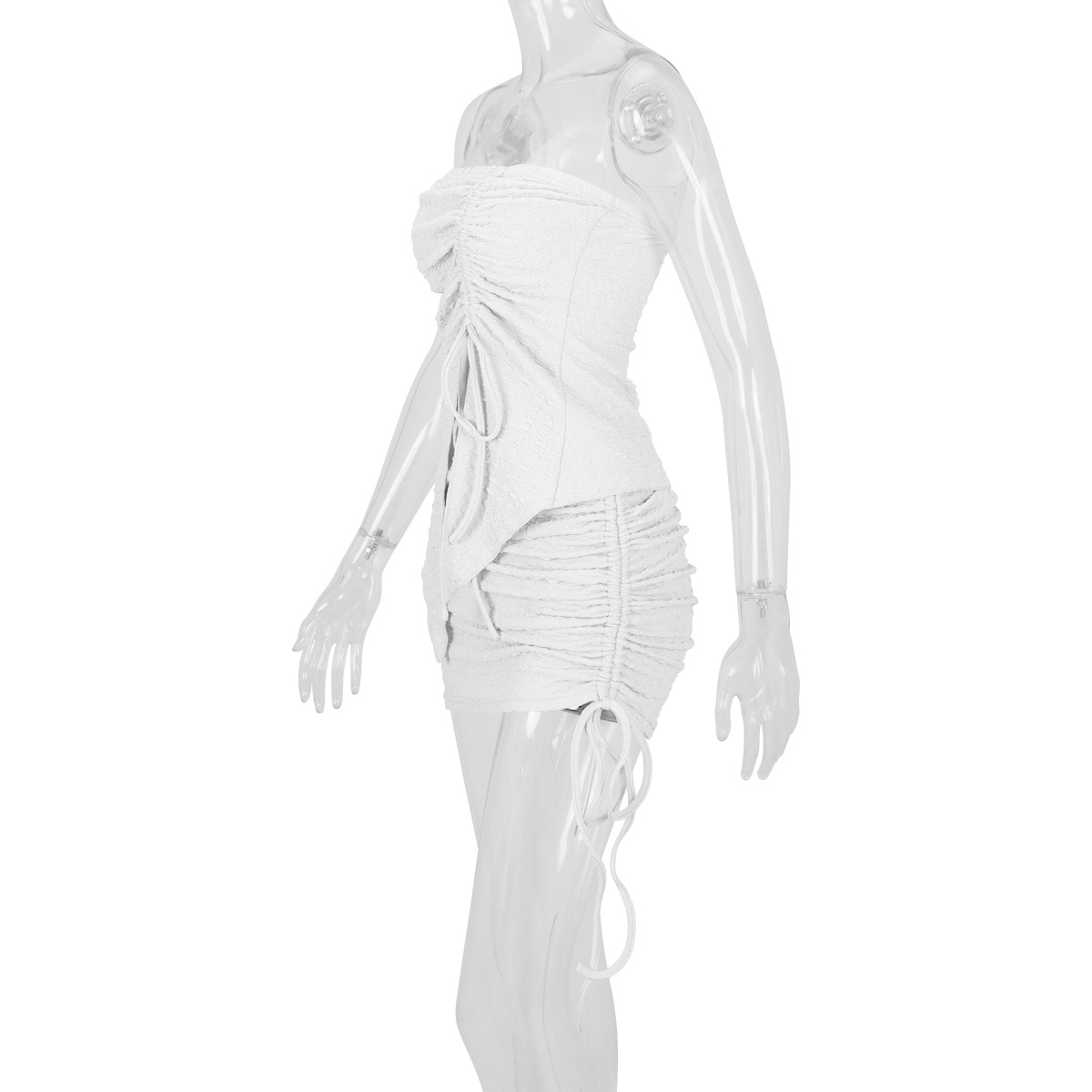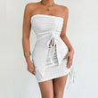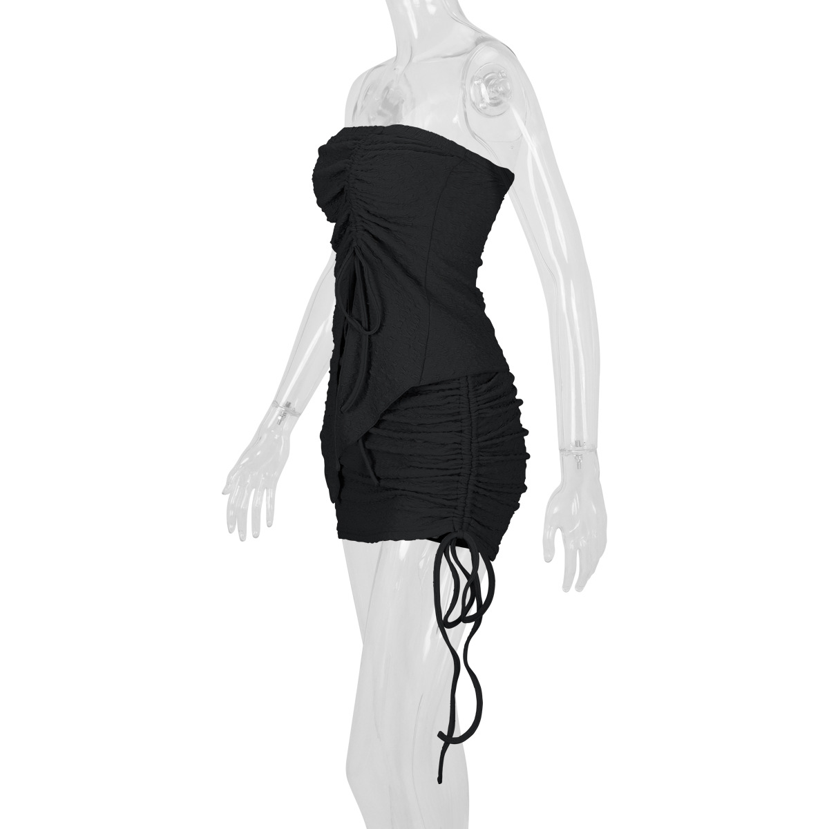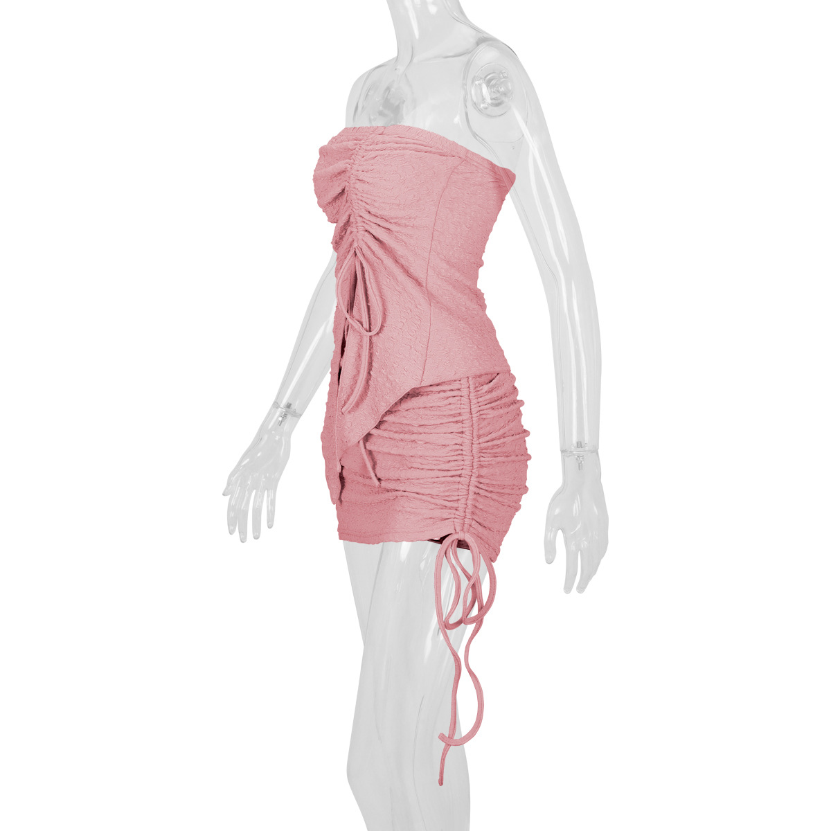 Women's Drawstring Y2K Suit Sets Strapless Tube Top with Ruched Wrap HIPS Skirt Outfits Mini Dress Two Pieces