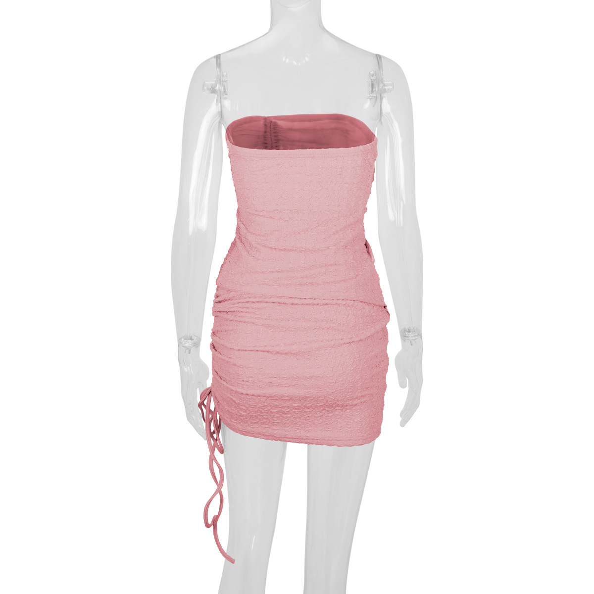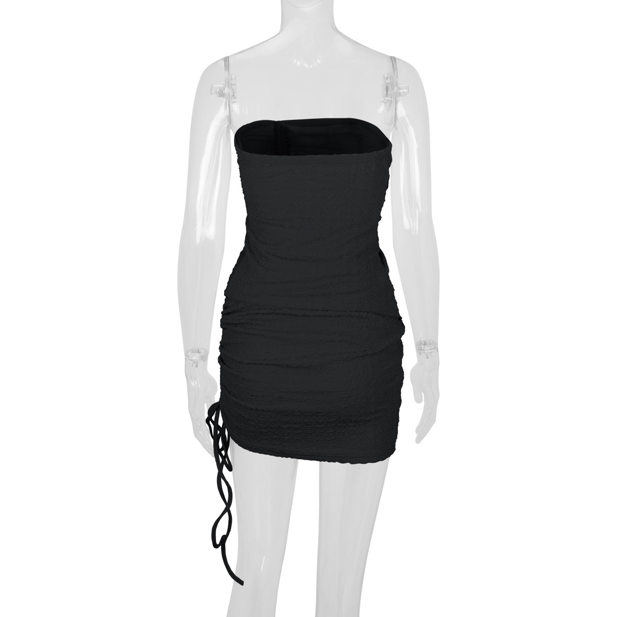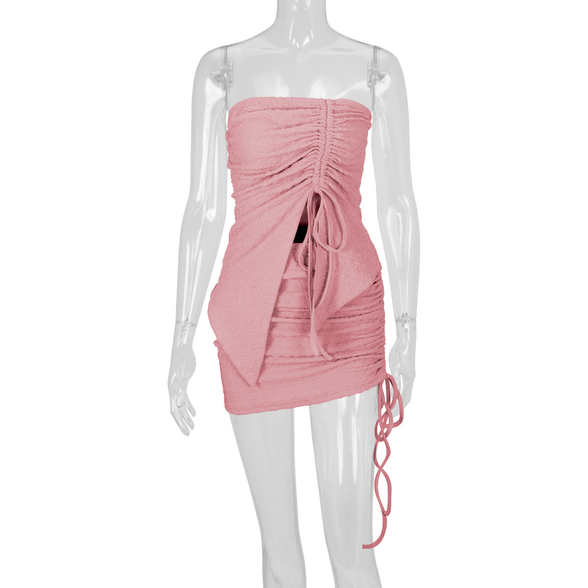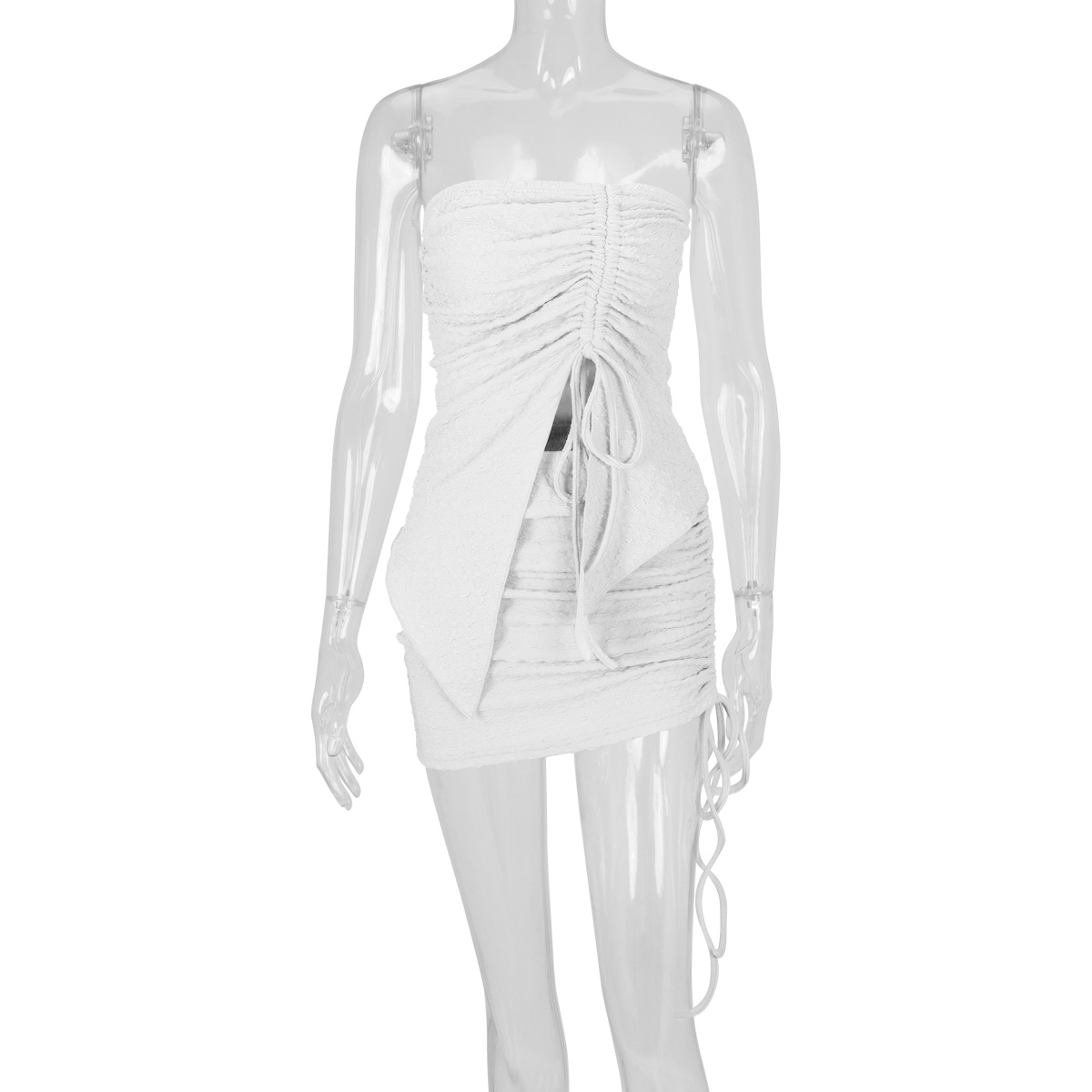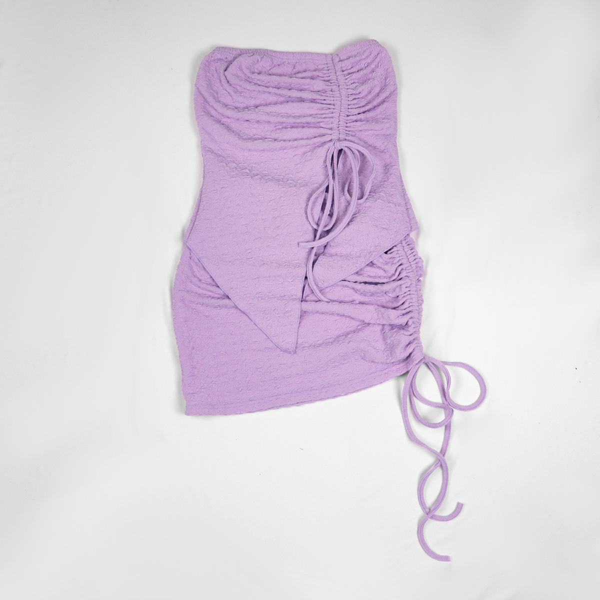Women's Drawstring Y2K Suit Sets Strapless Tube Top with Ruched Wrap HIPS Skirt Outfits Mini Dress Two Pieces