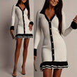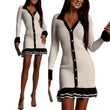Women's Dress Korean Style Fall Winter V-Neck Color Block Slim Fit Bodycon Knit Flounce Dress