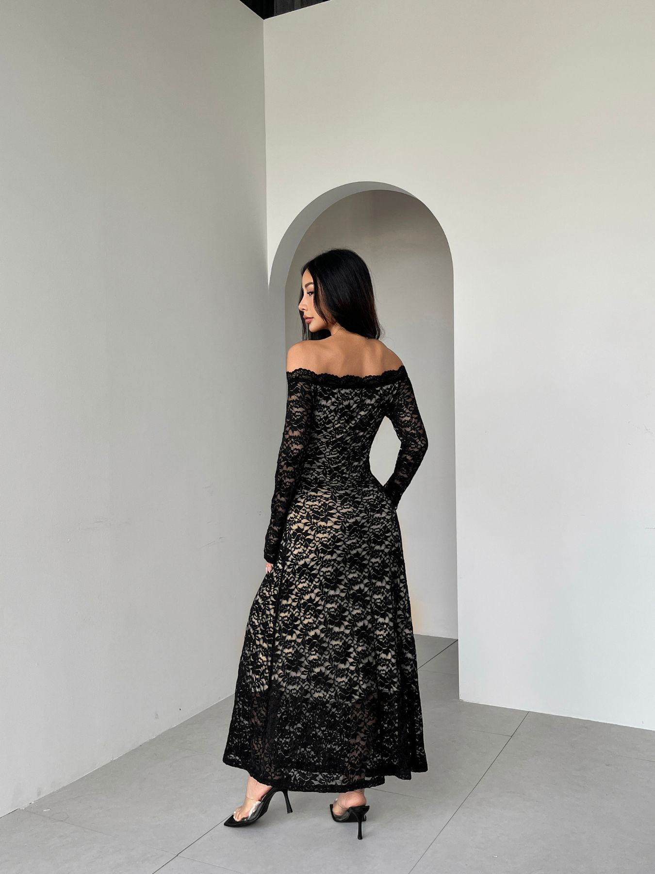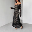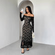 Womens Dress Sexy Long Sleeve Off Shoulder Dresses Slimming Lace Elegant Floral High Waist Maxi Fall Trendy Dresses