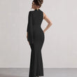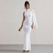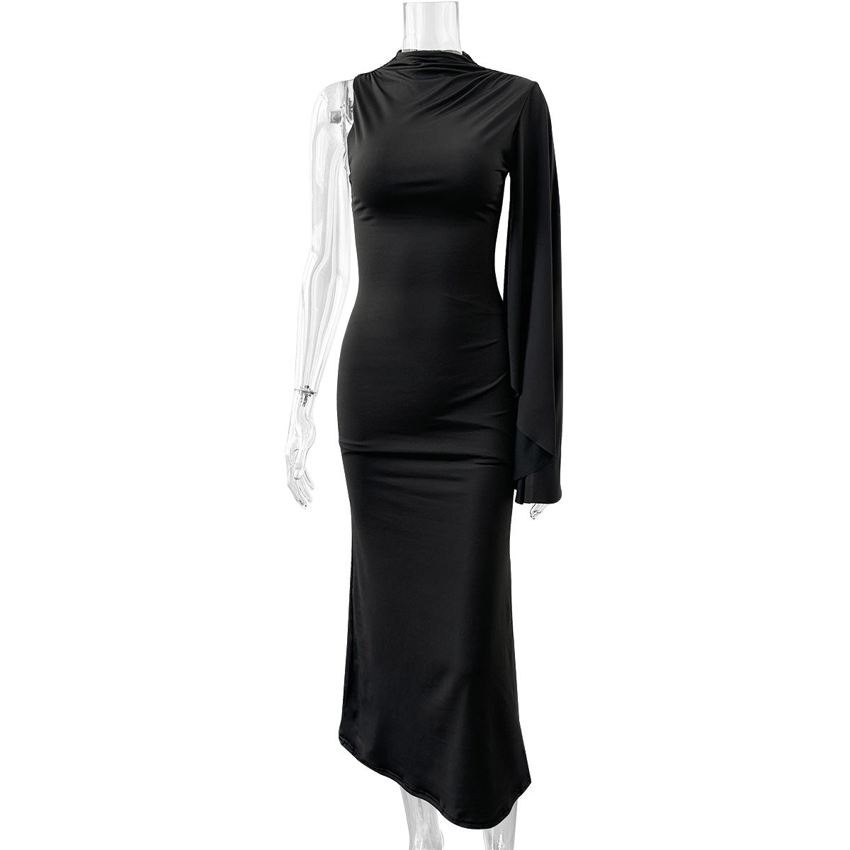 Women's Elegant One Bell Sleeve Side Split Bodycon Long Formal Evening Dress