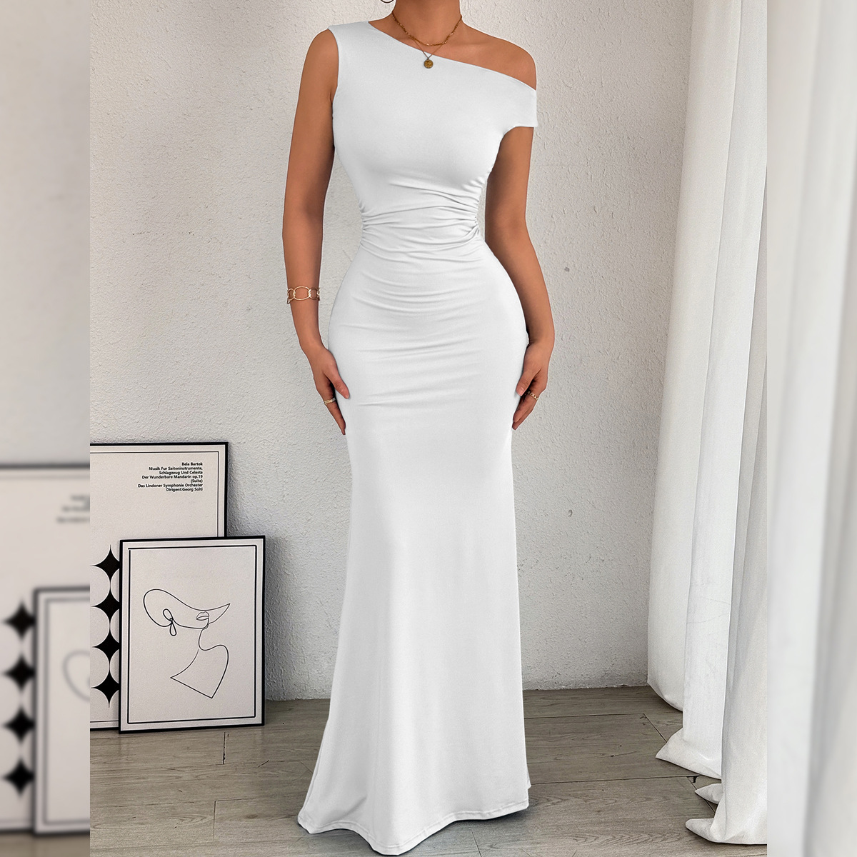 Women's Elegant One Shoulder Evening Party Dress Slim Fishtail Formal Cocktail Gowns Long Dressees