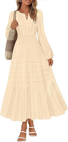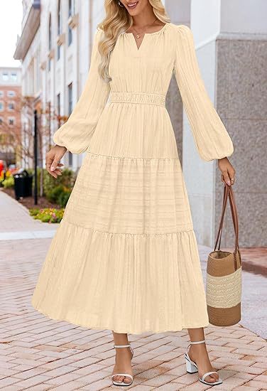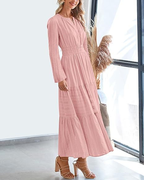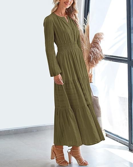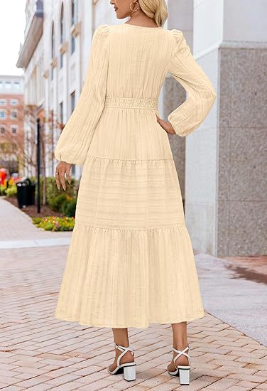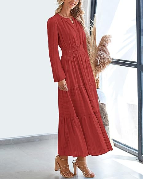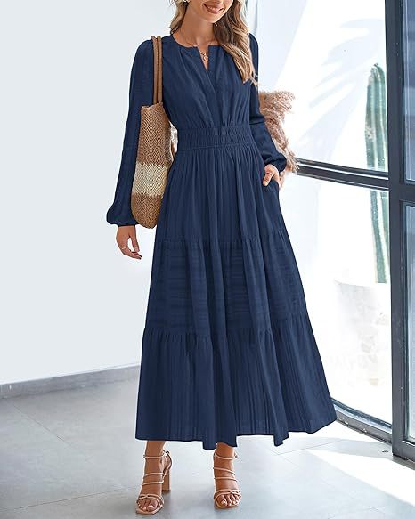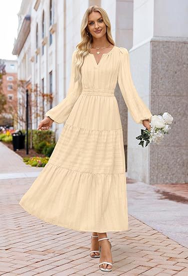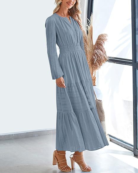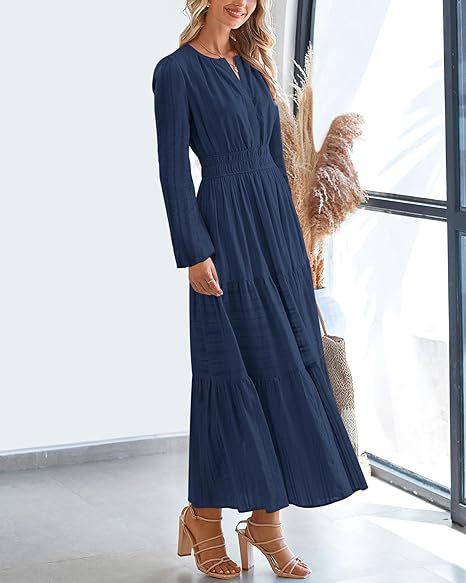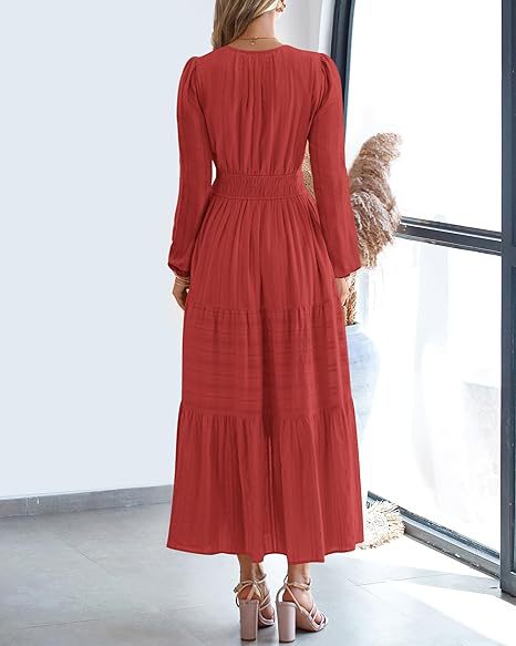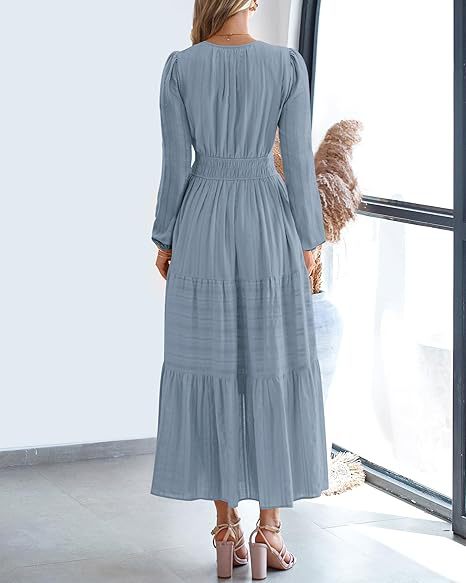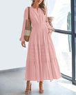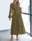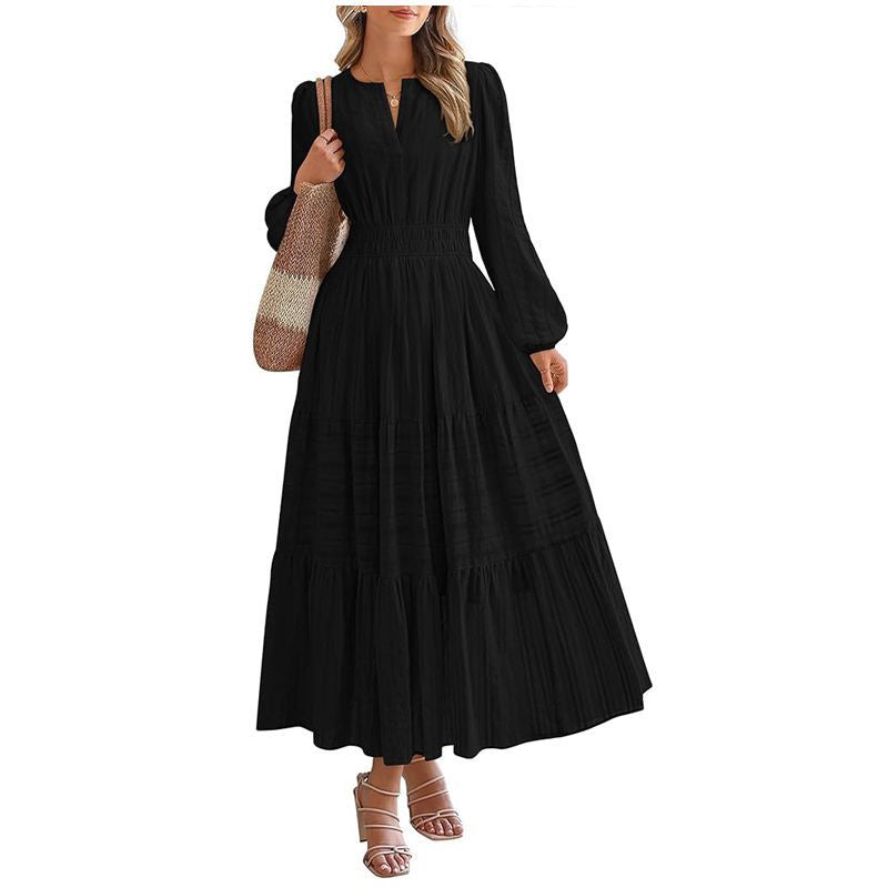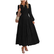 Women's Elegant V-Neck Long-Sleeved Solid Color Slimming Dress