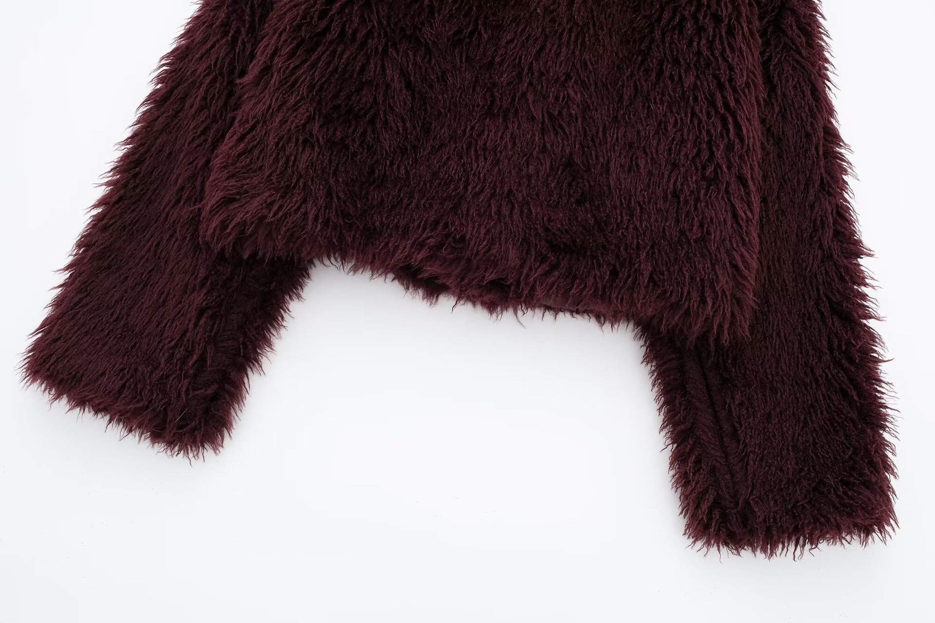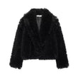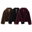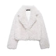 Womens Faux Fur Coat Cropped Fluffy Fur Jacket Long Sleeve Lapel Collar Winter Fuzzy Shaggy Short Coat