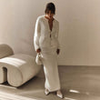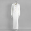 Women's Fuzzy 2 Piece Sweater Sets Fluffy Button Down Long Sleeve Cardigan Bodycon Maxi Skirt Outfits