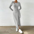 Women's Knitting Sweater Bodycon Dress Asymmetric Knot Maxi Long Sleeve Fit Round Neck Solid Dresses Woman