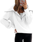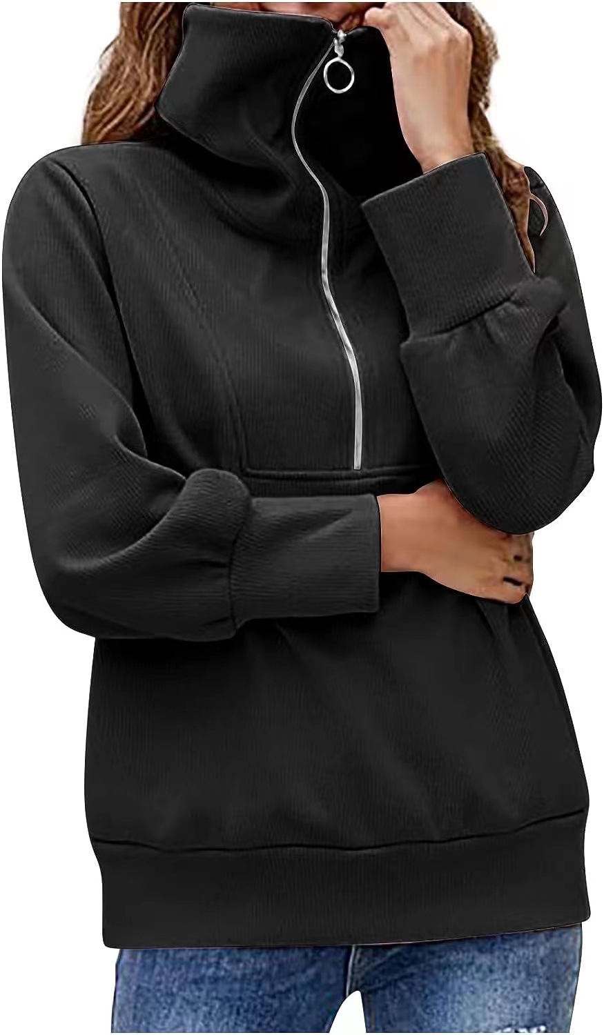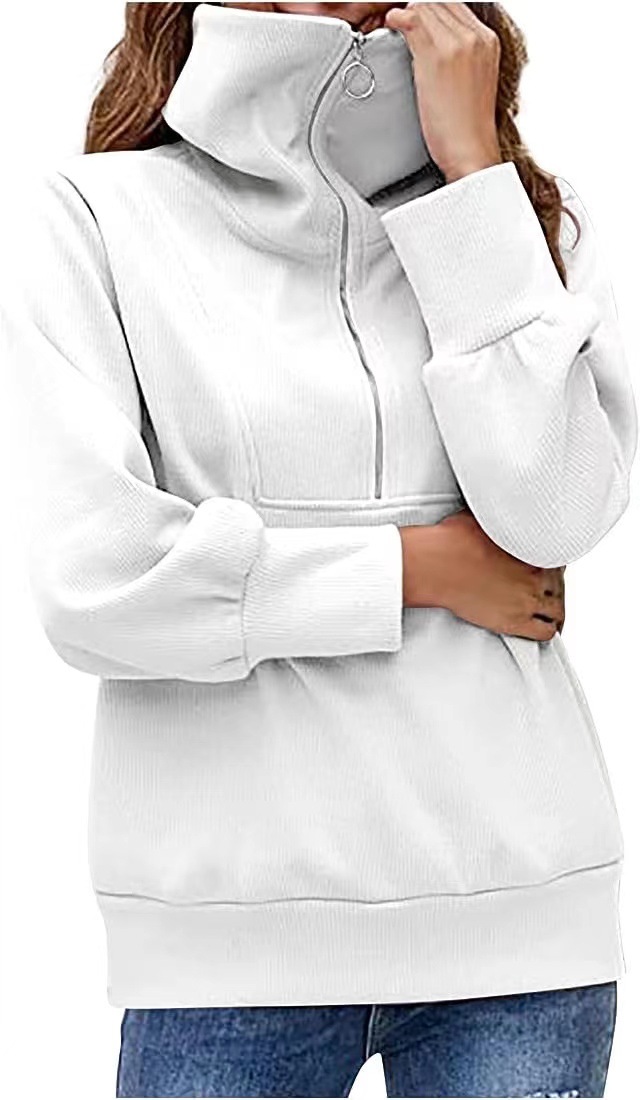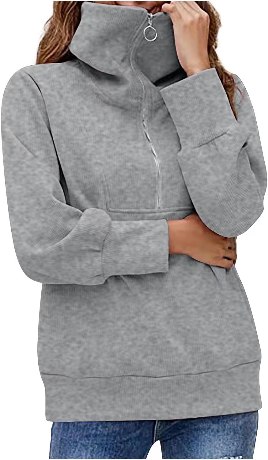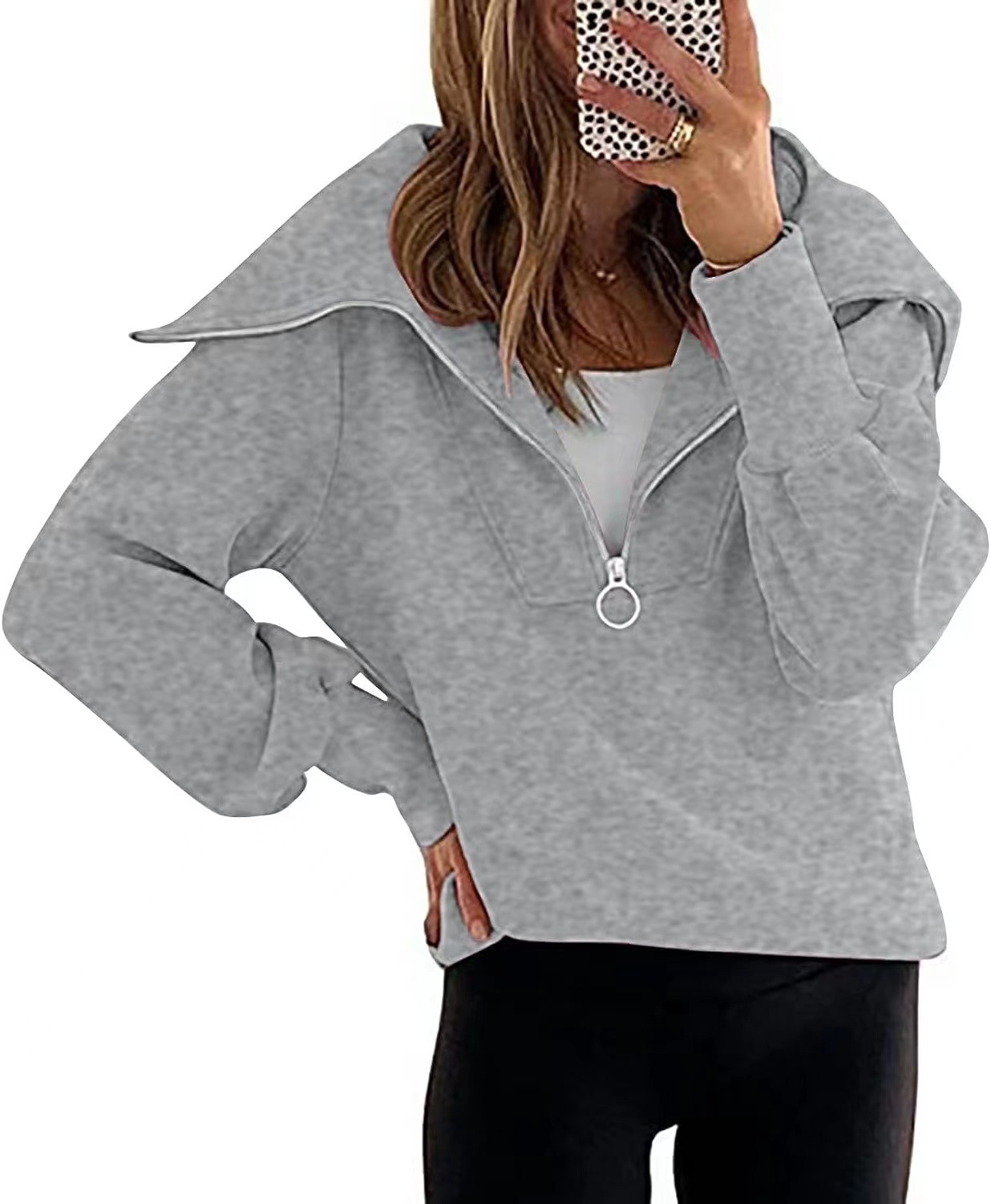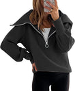 Women's Oversized Quarter-Zip Hooded Sweatshirt Long-Sleeved Hoodie
