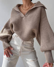 Women's Pink Oversized Collared V Neck Sweater Cozy Knit Pullover Tops Loose Fit Crew Neck Seeaters for Fashion Looks 2025