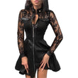 Women's PU Faux Leather Houndstooth Patchwork Zipper Up Club Party A-Line Dress