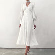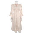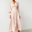 Women's Puff Sleeve Satin Maxi Dress Long Lantern Sleeve Button Down Ruffle Single Breasted Vintage Midi Dresses