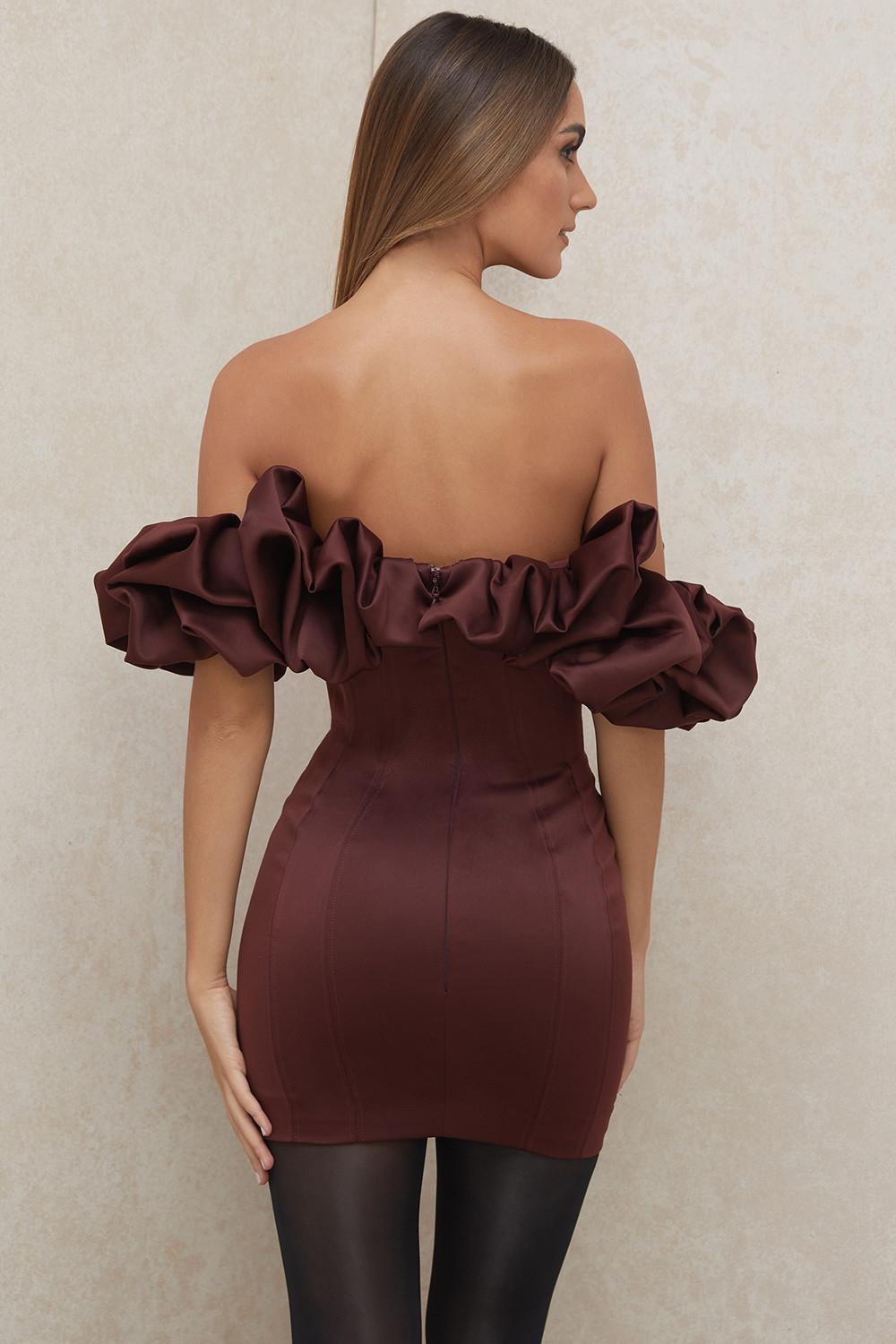 Women's Satin Ruffle Dress Off Shoulder Bodycon Elegant Strapless Summer Sexy Cocktail Party Short Mini Dresses