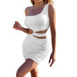 Women's Sexy One Shoulder Short Mini Dress Cut-Out Slim Ft Bodycon Ruched Short Beach Prom Party Dresses Clubwear