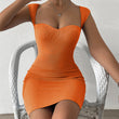 Women's Sweetheart Neckline Cap Sleeve Bodycon Mini Dress Sexy Sleeveless Square Neck Party Pencil Dresses