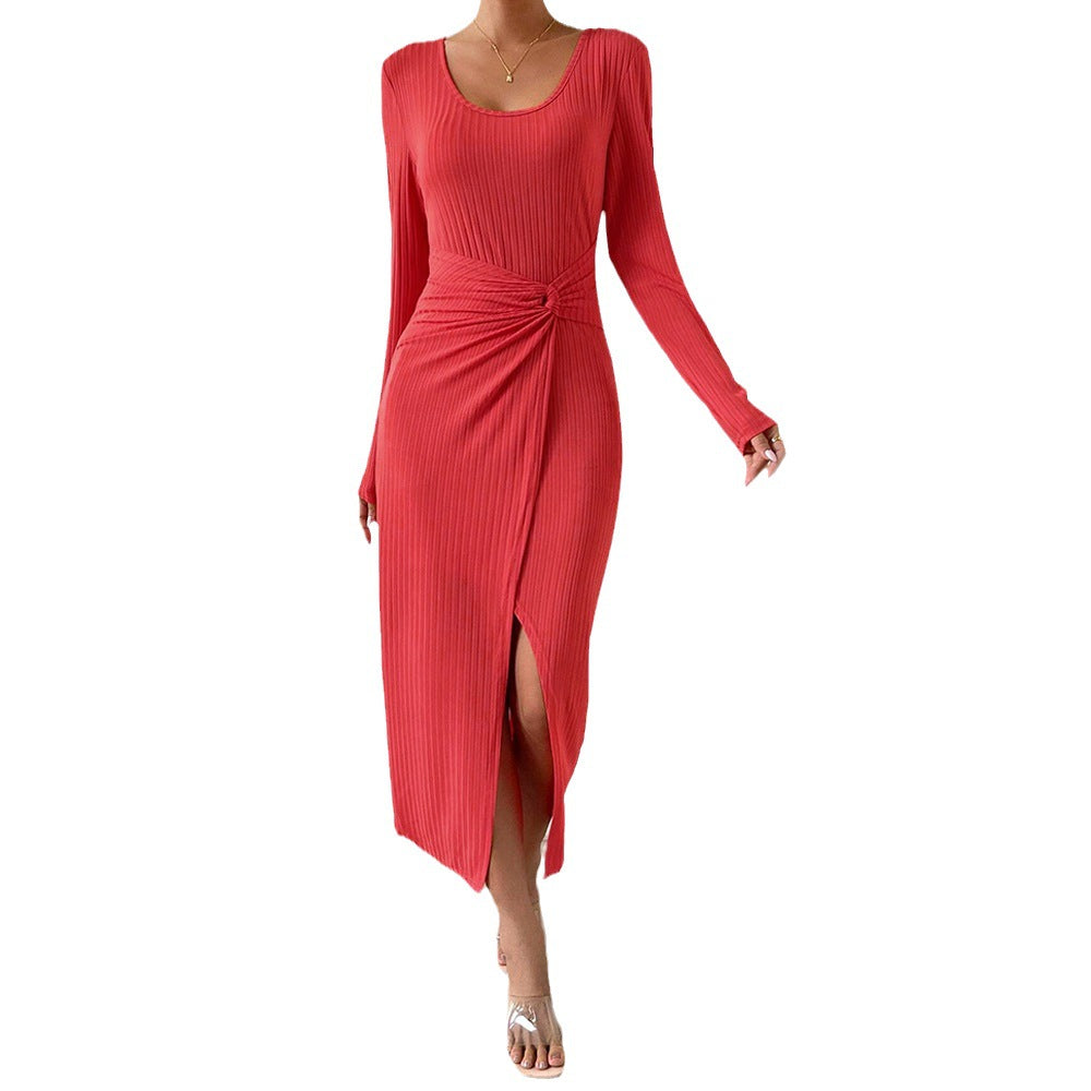 Women's Temperament, Sexy Commuting, Split Hip, Solid Color Dress