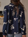 Womens Vintage Embroidered Floral Button Down Shirts Casual Fall Ruffled V Neck Lantern Long Sleeve Blouse Top