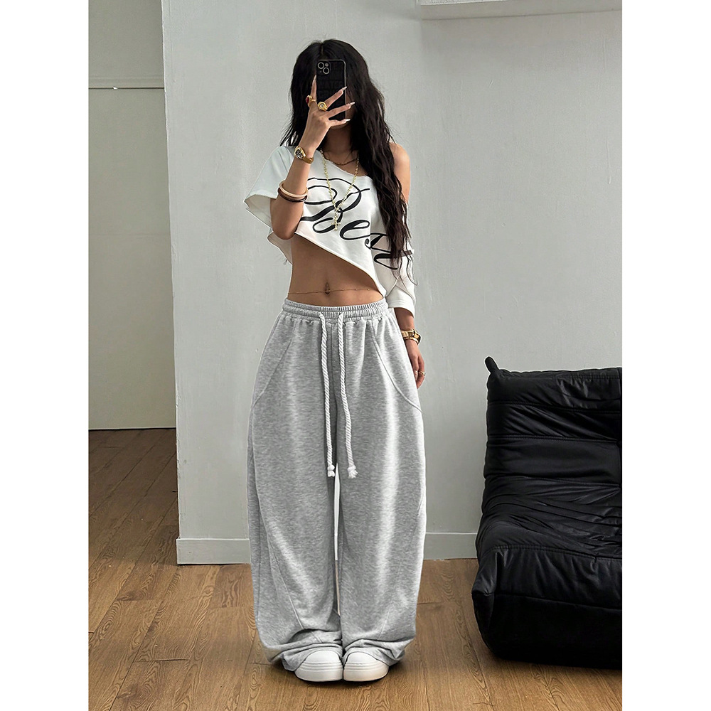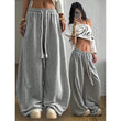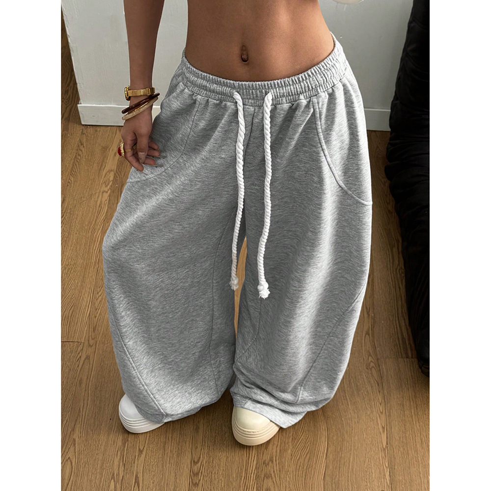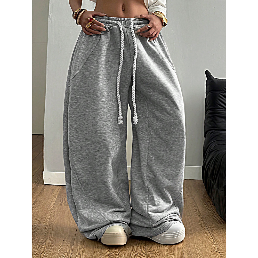 Women's Wide Leg Barrel Sweatpants Baggy Elastic Waist Drawstring Trousers Pants Streetwear