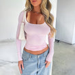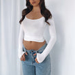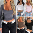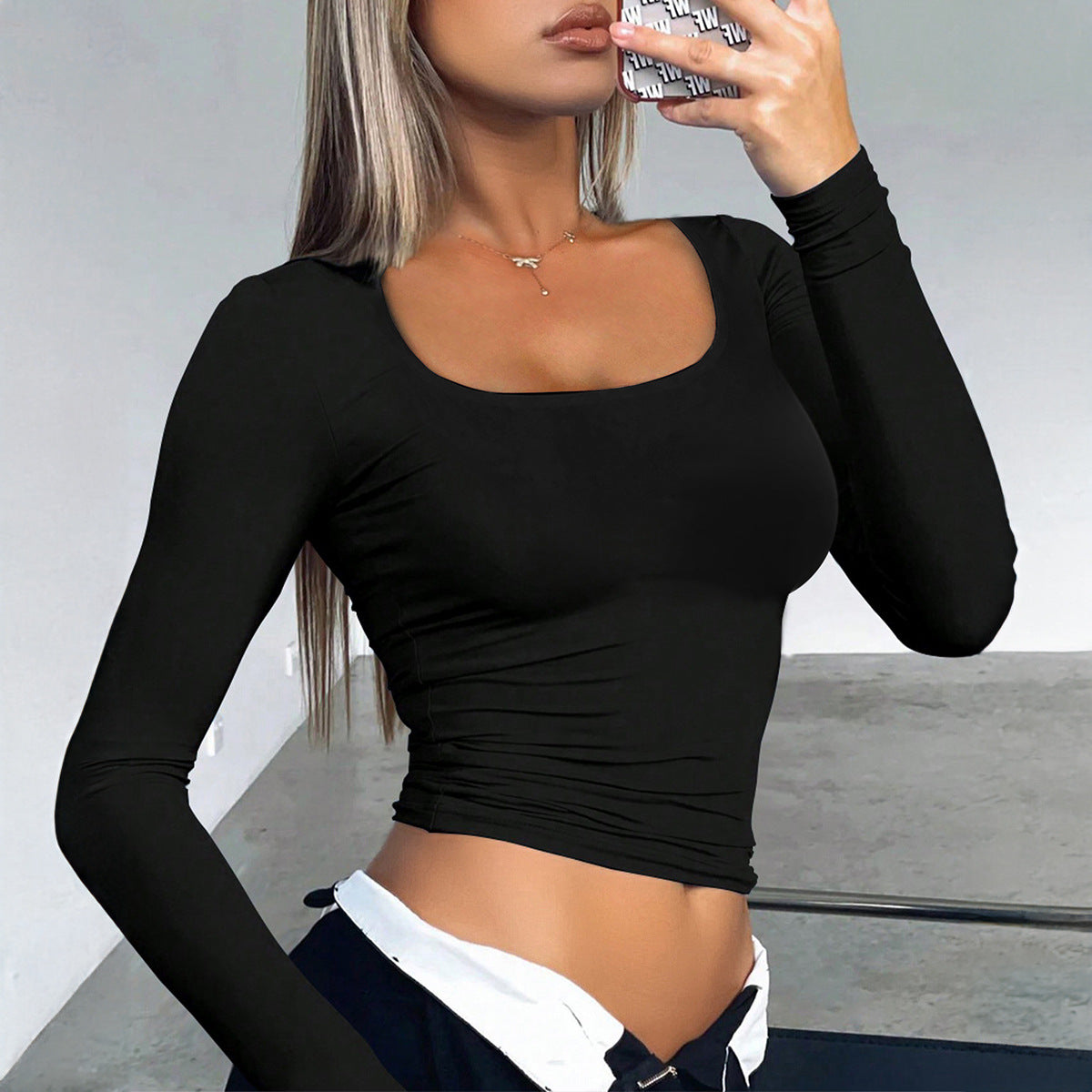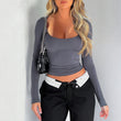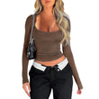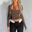 Women's Y2K Solid Color u Neck Casual Top Slim Slim Long Sleeve Top
